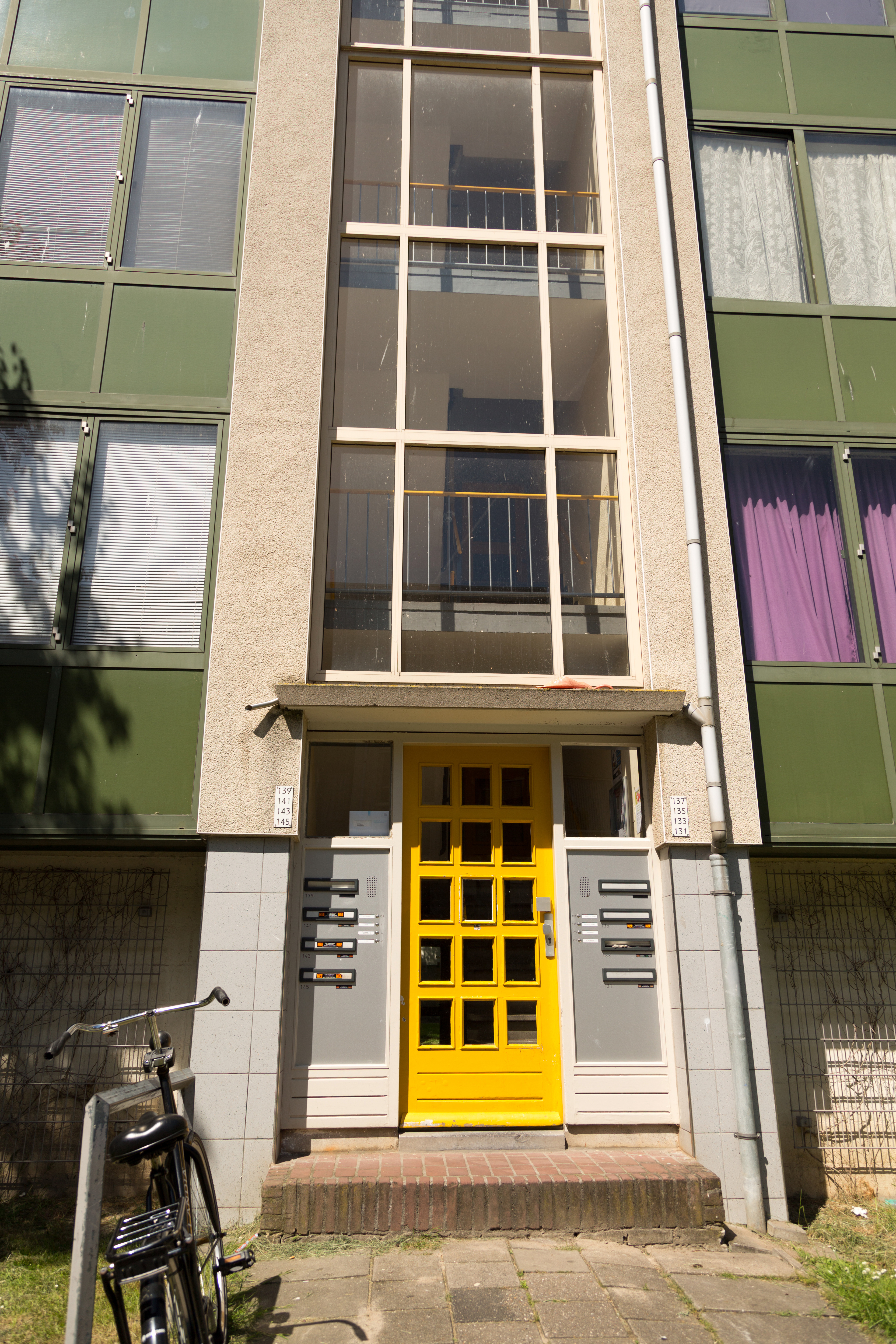 - Trappenhuis van flatwoningen aan de Troelstraweg.