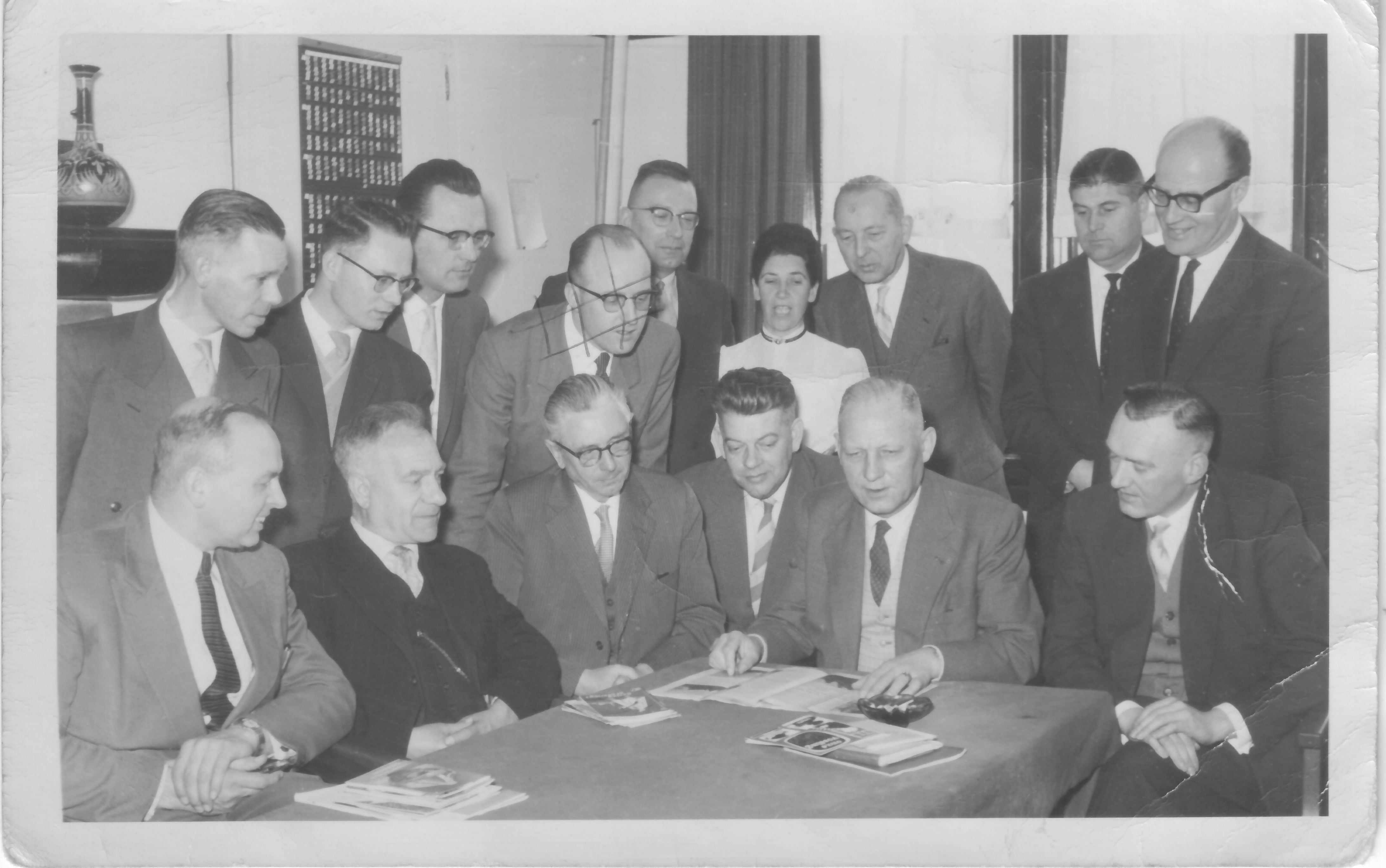 Zittend van links naar rechts: De heren Van der Stoel / Bogert / Jellema / Kraaijeveld / Van der Leeden / Koppenol. Staand van links naar rechts: De heren Van der Laan / Tulp / Van Dongen / ? / Van Wingerden /De Meer / Van Hulst / ? / Dame mevr. ? handwerkjuf.