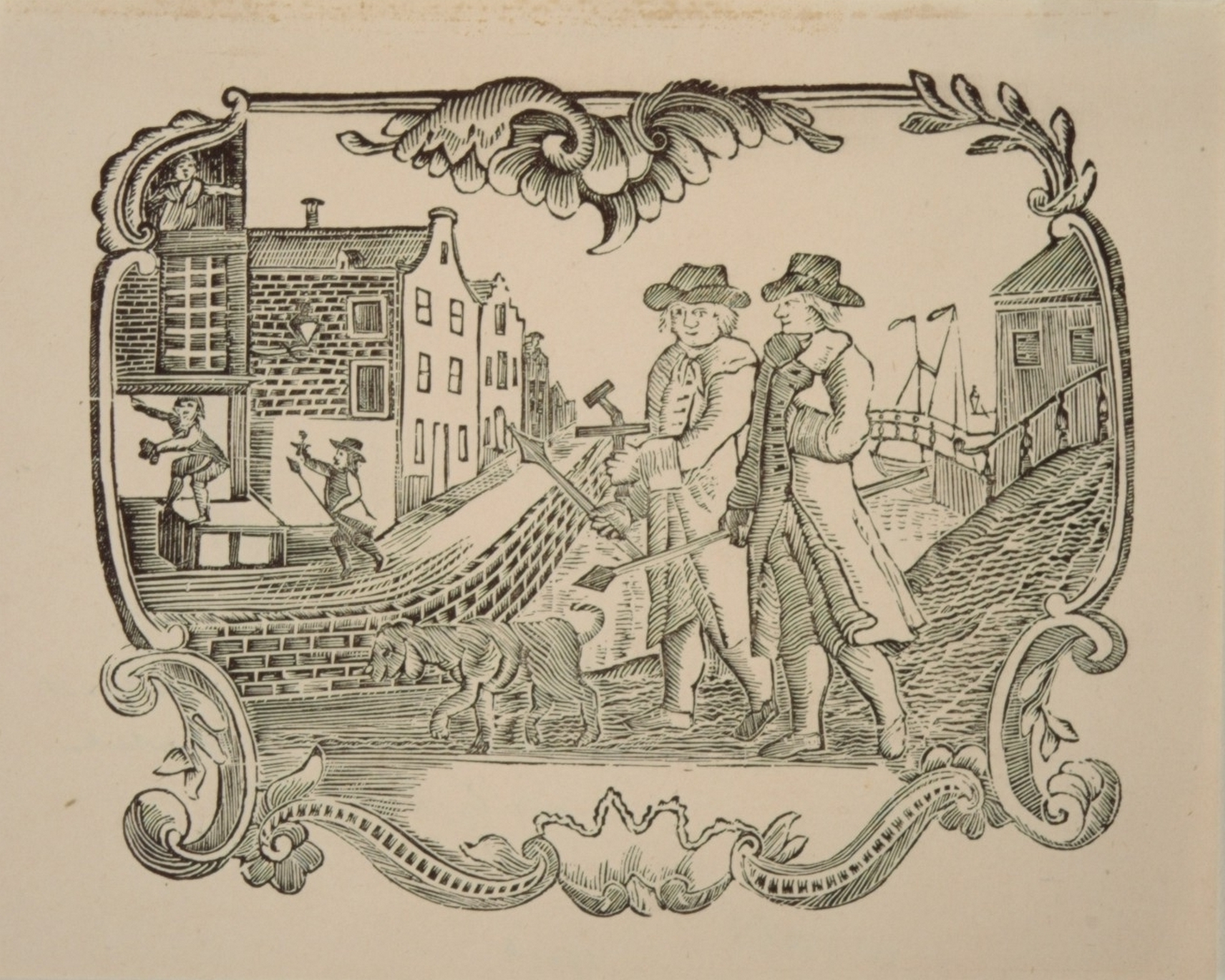 - Nieuwjaarsprent der klapwakers te Ridderkerk; twee klapwakers met pieken gewapend en vergezeld van een hond; op de achtergrond een derde die een inbreker achtervolgt.