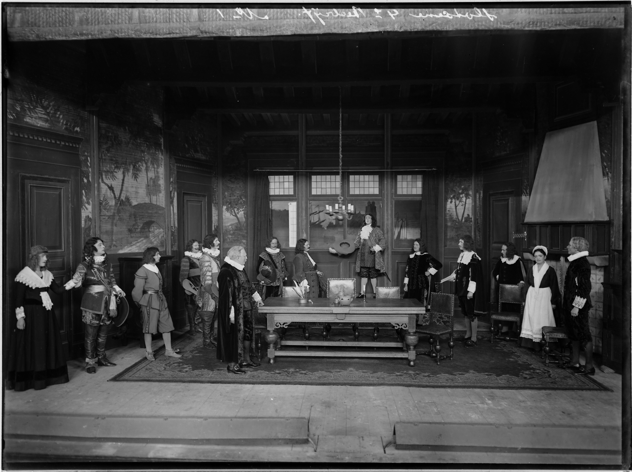 Opvoering van het stuk "De spion van de Prins" door rederijkerskamer Inter Amicos in schouwburg Kunstmin