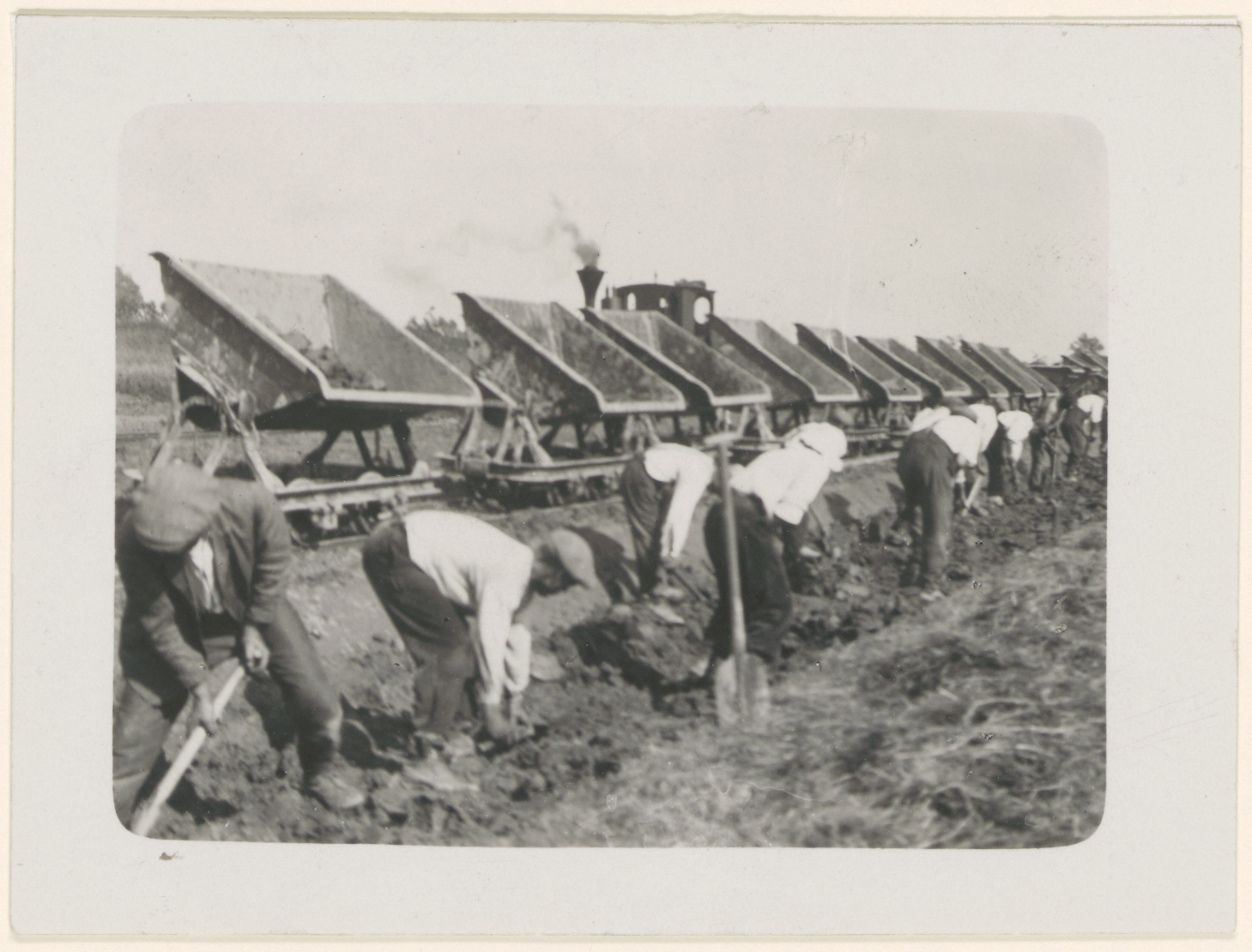 - arbeiders / werklieden inpolderingen locomotieven treinen