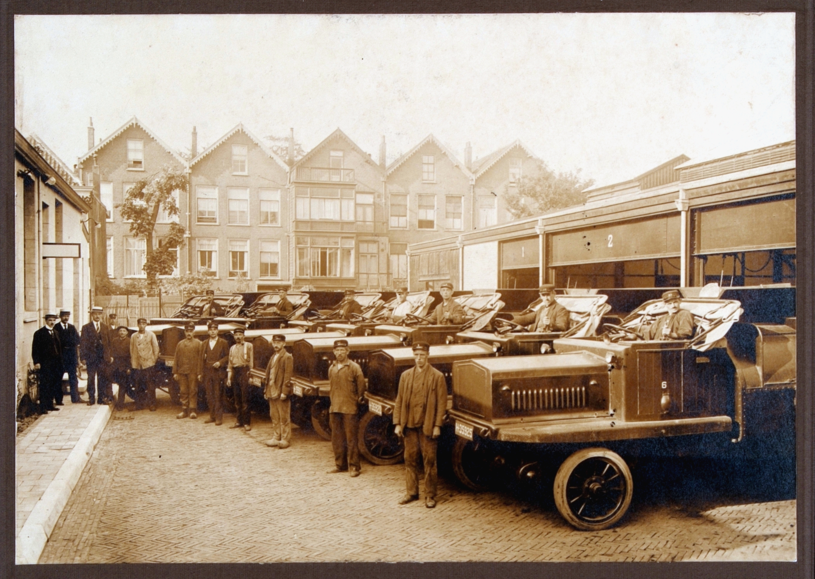 Volgens mij is de beschrijving juist. Wagenstalling en uitrij-basis aan het Korte Kromhout met op de achtergrond de achterkant van de huizen aan de Vest. Ca. 1915/20. Wie weet beter/meer ?