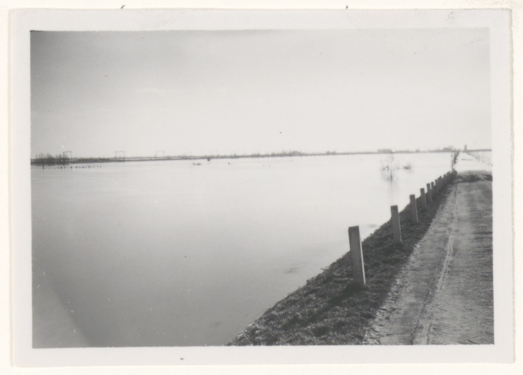 - Ondergelopen Rijksstraatweg nabij de Tweede Tol tijdens de watersnood, gezien naar het zuiden.
