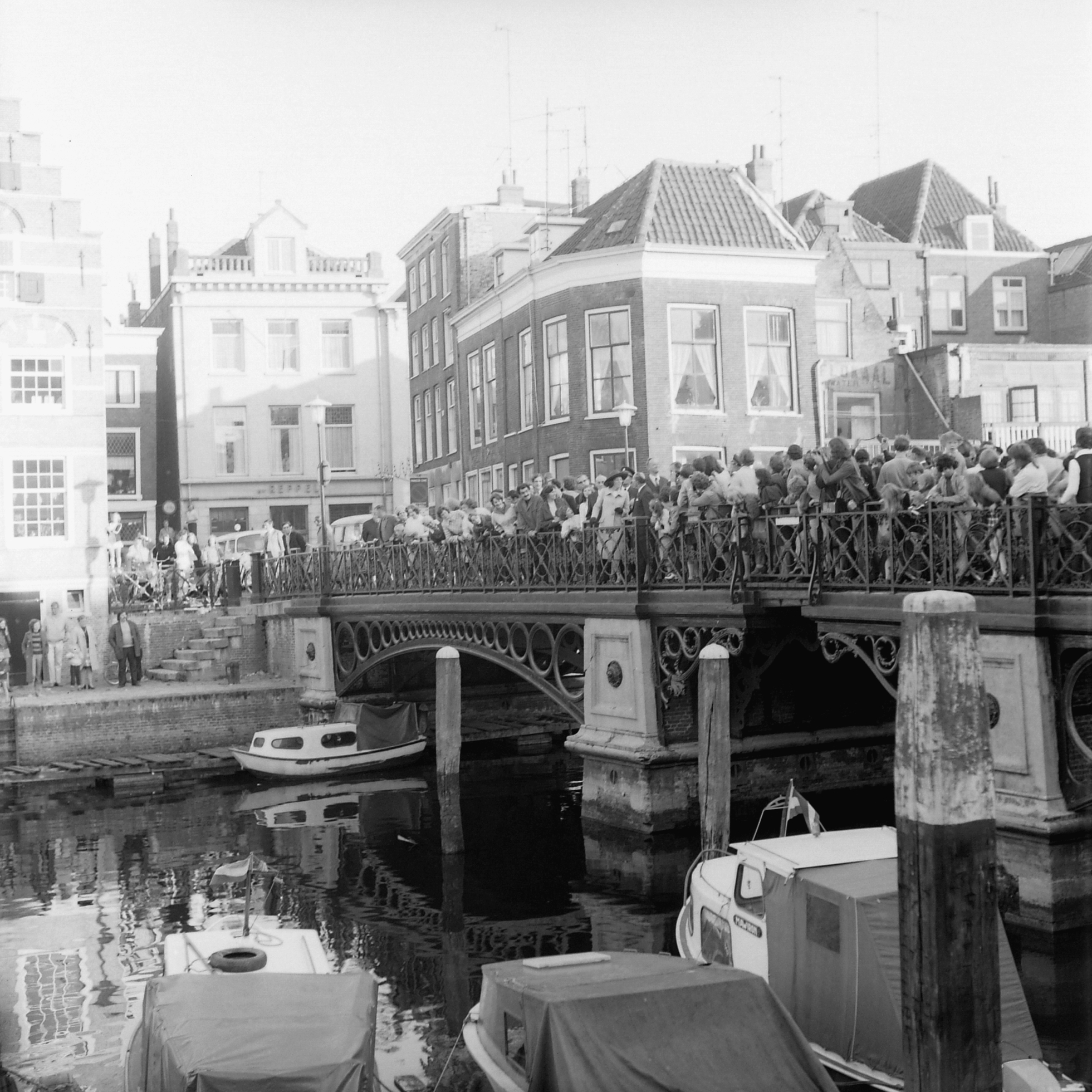 Wachtende mensen voor de komst van Prinses Beatrix en Prins Claus op de Nieuwbrug