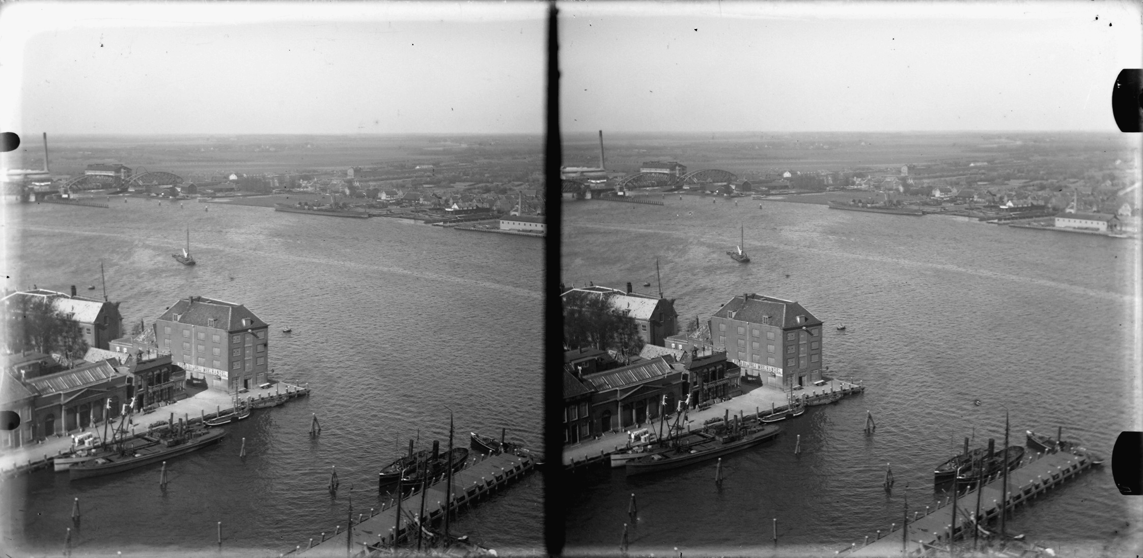 - aanlegplaatsen dukdalven / meerpalen havens pakhuizen panorama's spoorbruggen stoomboten