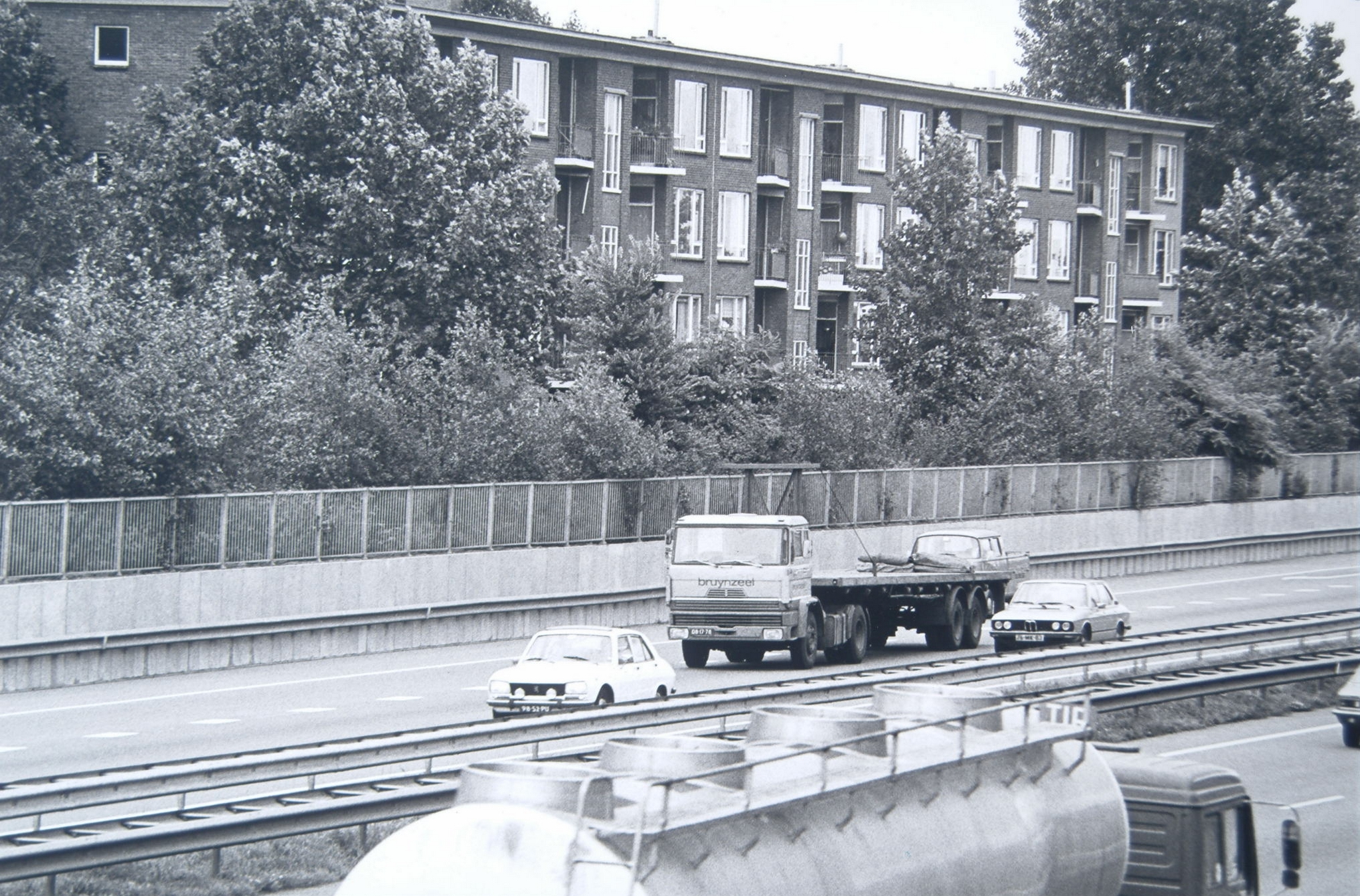 - auto's autosnelwegen / rijkswegen flatgebouwen vrachtwagens
