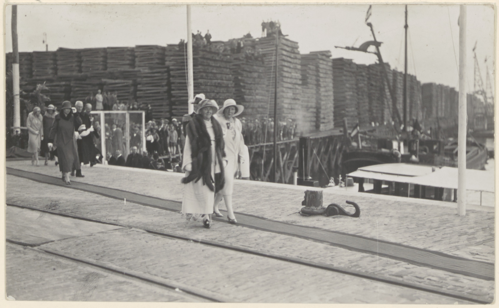 - Officiële ingebruikneming van de Wilhelminahaven door Hare Majesteit Koningin Wilhelmina. Op de achtergrond de opslag van bielzen voor de Nederlandse Spoorwegen.