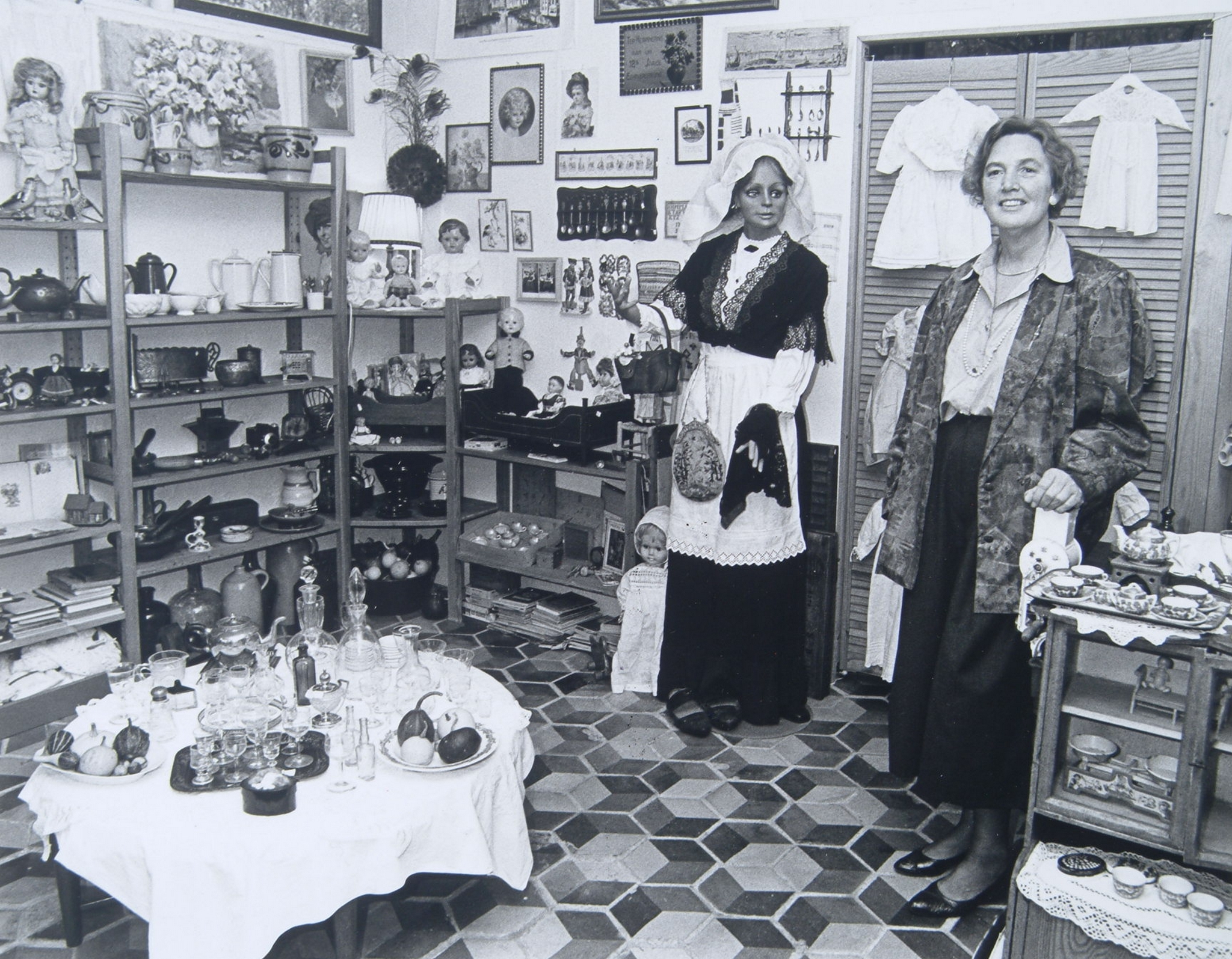 Anneke Verseveldt in haar winkeltje in poppen, porselein, glaswerk e.d. te …