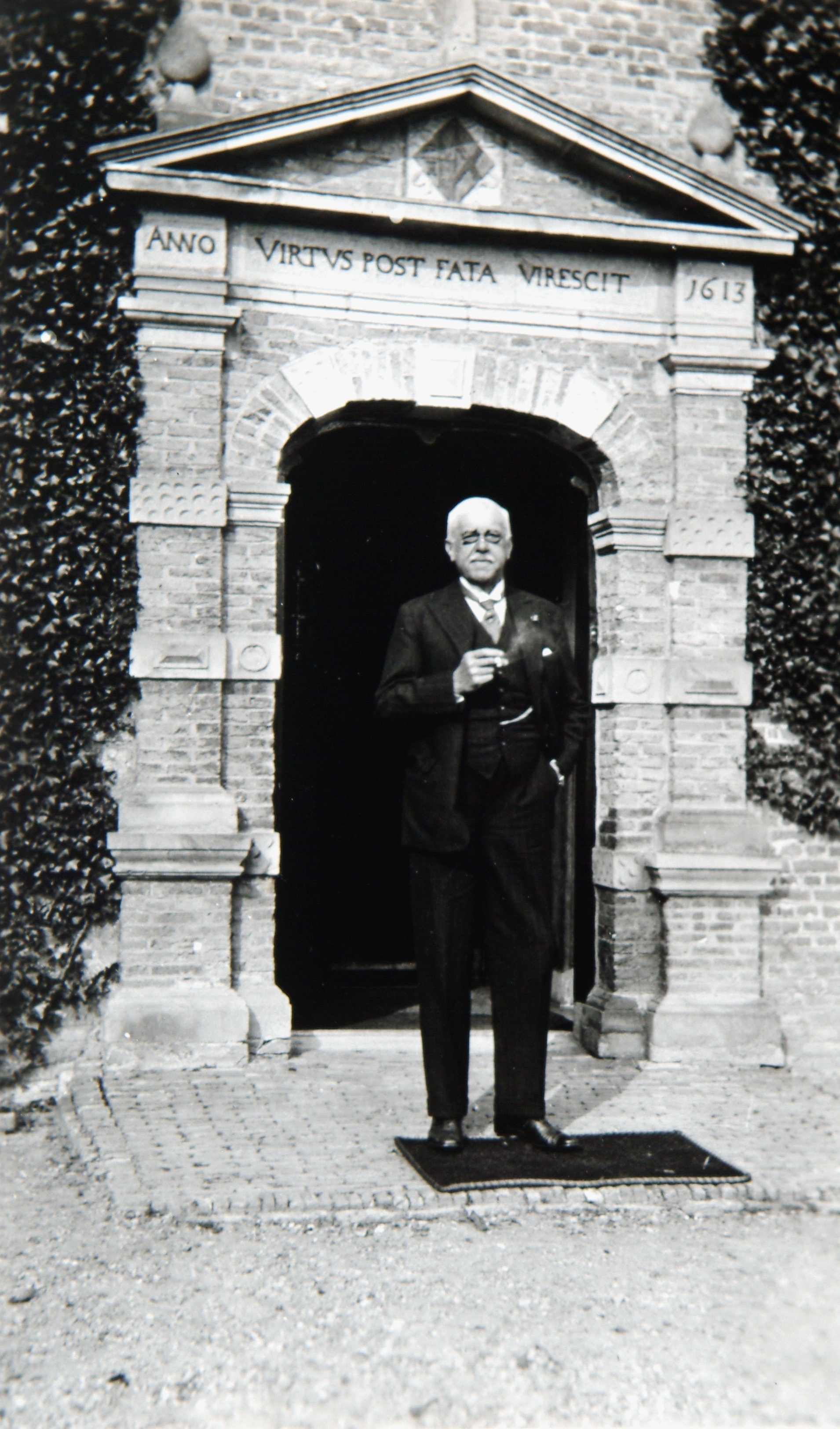 - De heer J.J. Vriesendorp, firmant van het assuradeursbedrijf Boonen en Vriesendorp, voor de ingang van zijn villa in Renesse, Moermond genaamd. Hij bewoonde ook een villa aan de Vrieseweg bij de Buitenschool.