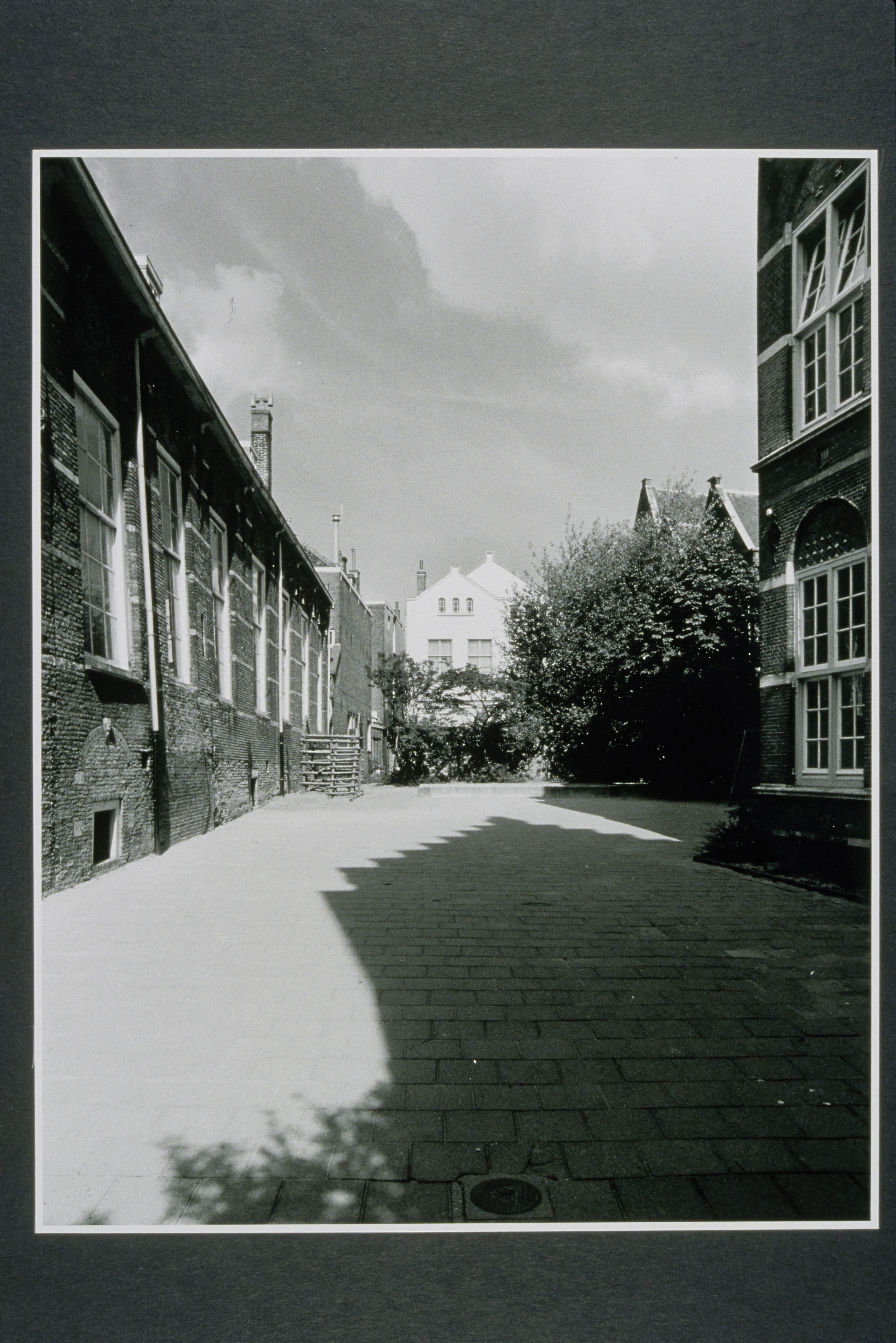 - Speelplaats van de Statenschool aan de Hofstraat. Links de Berckepoort.