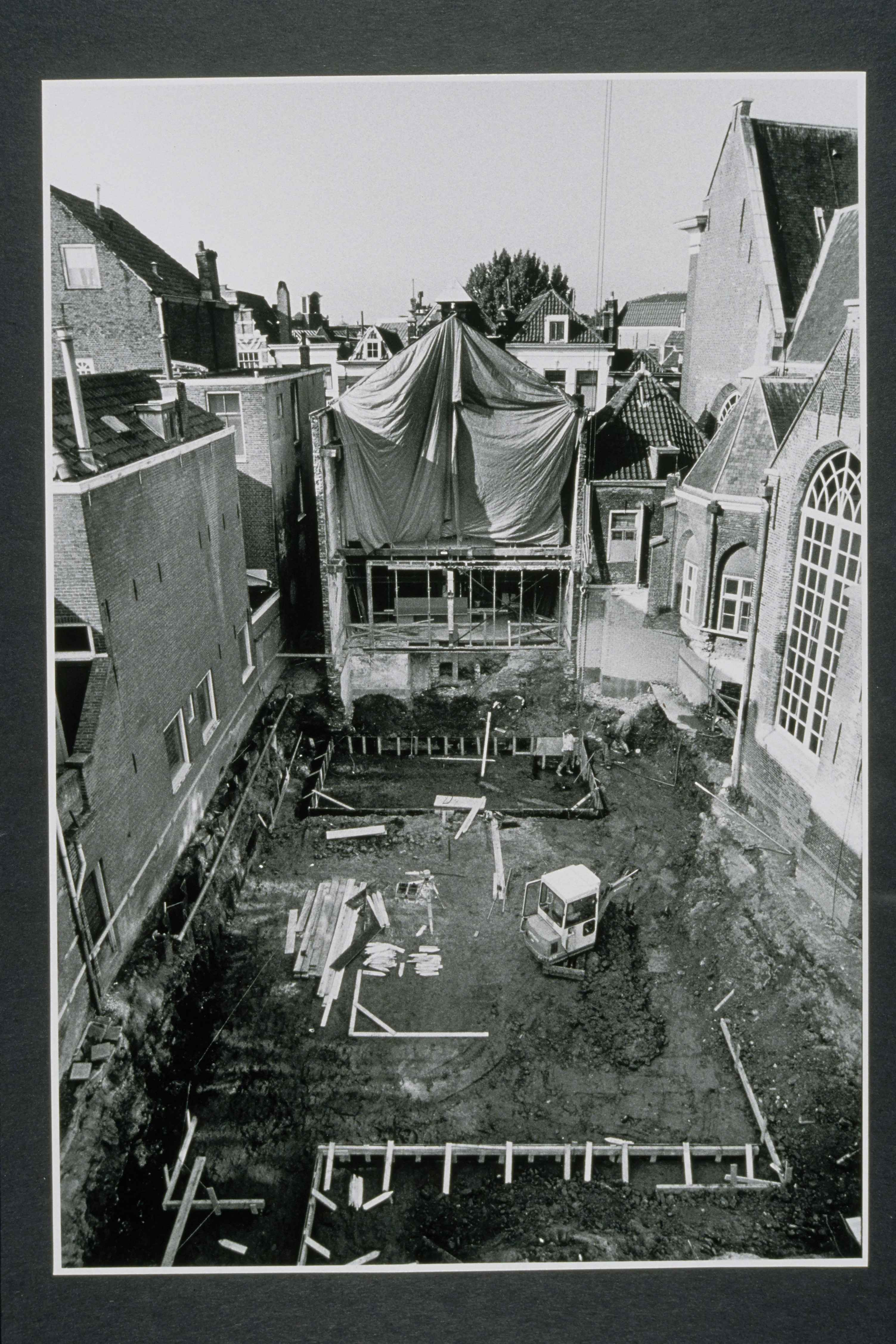 - Restauratie van de Berckepoort (links), gezien vanuit de Hofstraat. Er wordt een verbinding gemaakt met Voorstraat 220. Rechts de Augustijnenkerk.