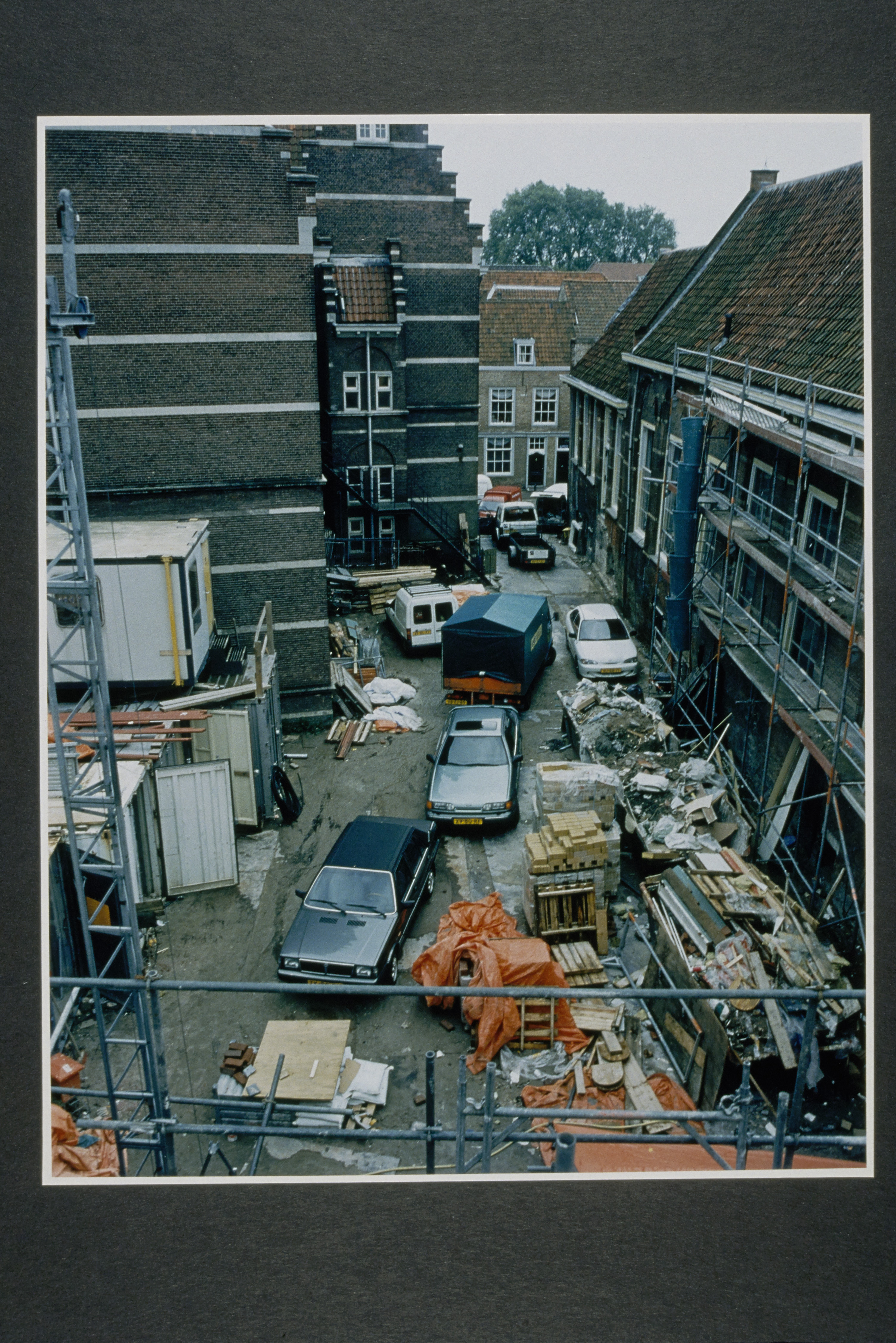 Restauratie van de Berckepoort gezien richting Hofstraat. Links de Augustijnenkerk.