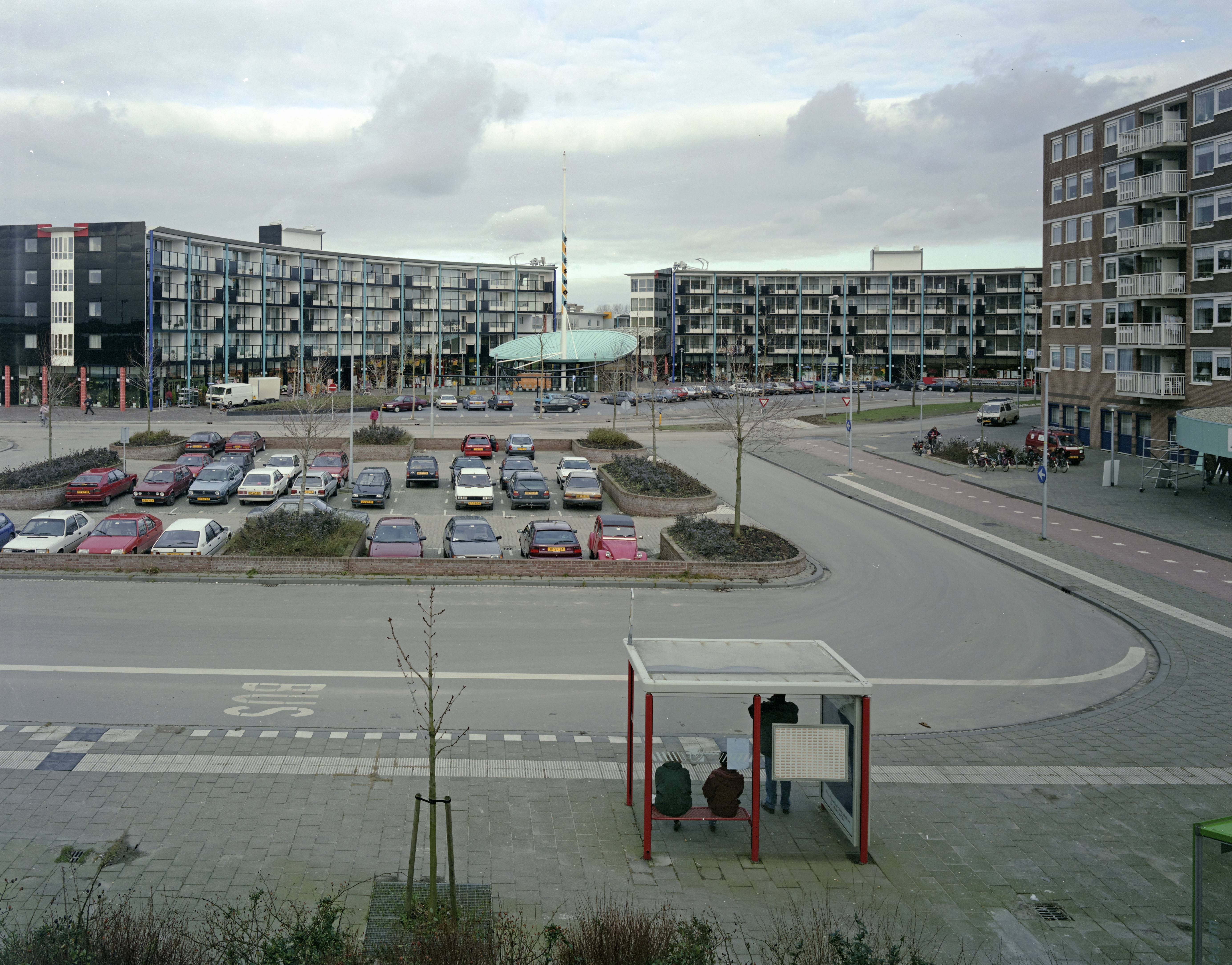 - Winkelcentrum De Bieshof op het Van Eesterenplein,gezien over de parkeerplaats op het Dudokplein.