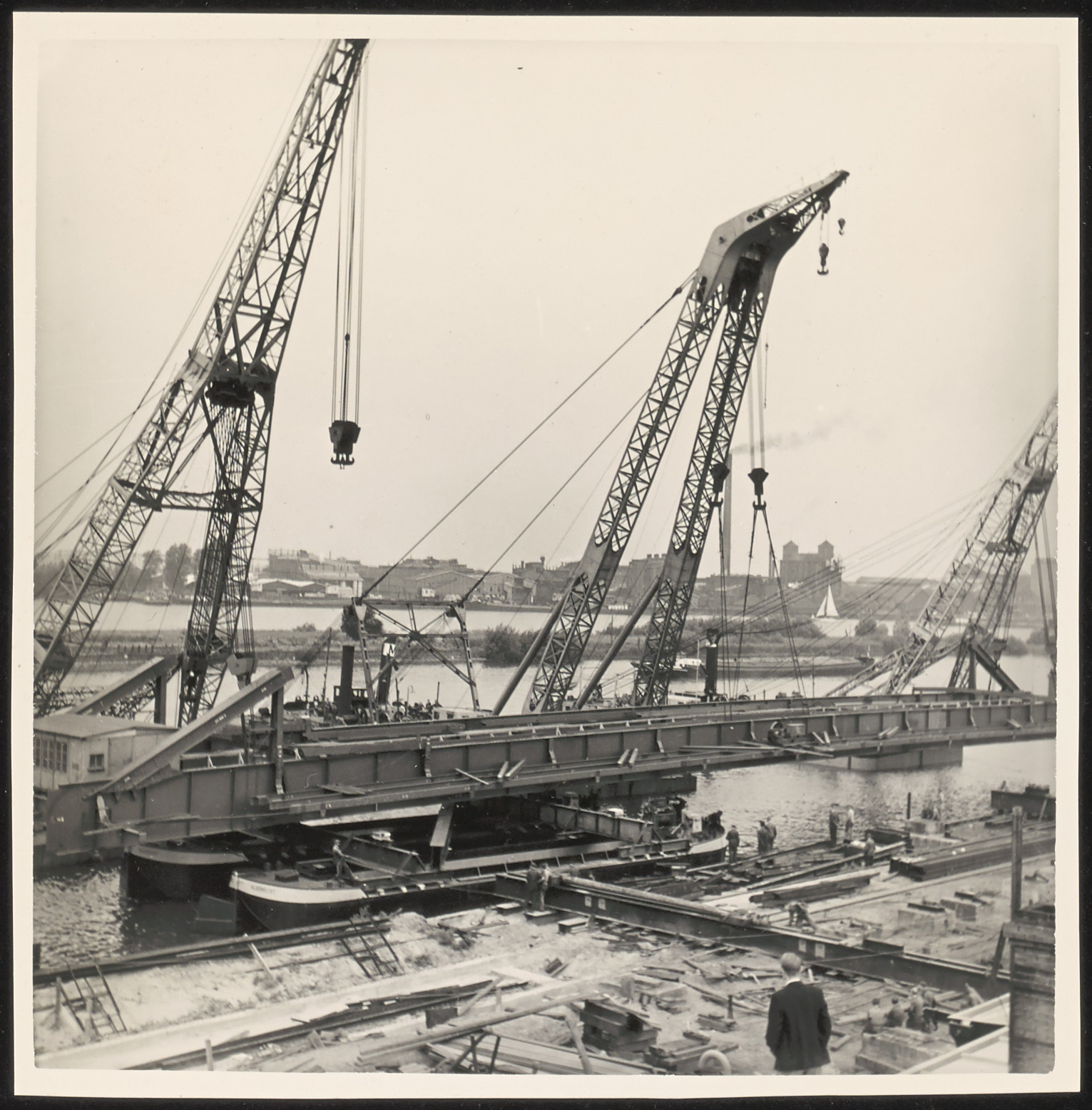 - Bouw op de werf van Penn & Bauduin aan de ‘s-Gravendeelsedijk van de IJsselbrug bij Doesbrug.