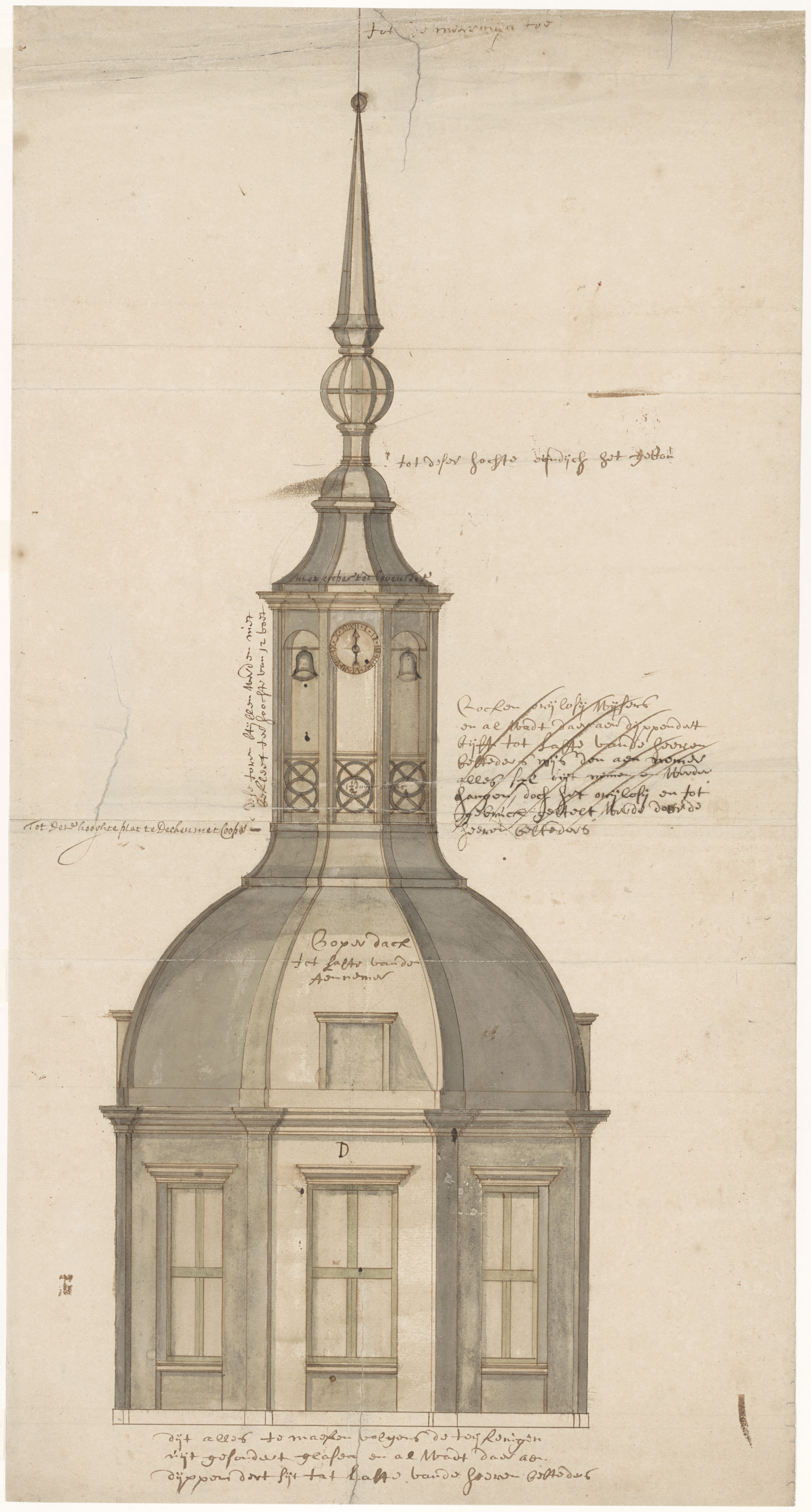 - Bouwtekening van de Groothoofdspoort voor de nieuwe koepel die in 1692 is gerealiseerd.