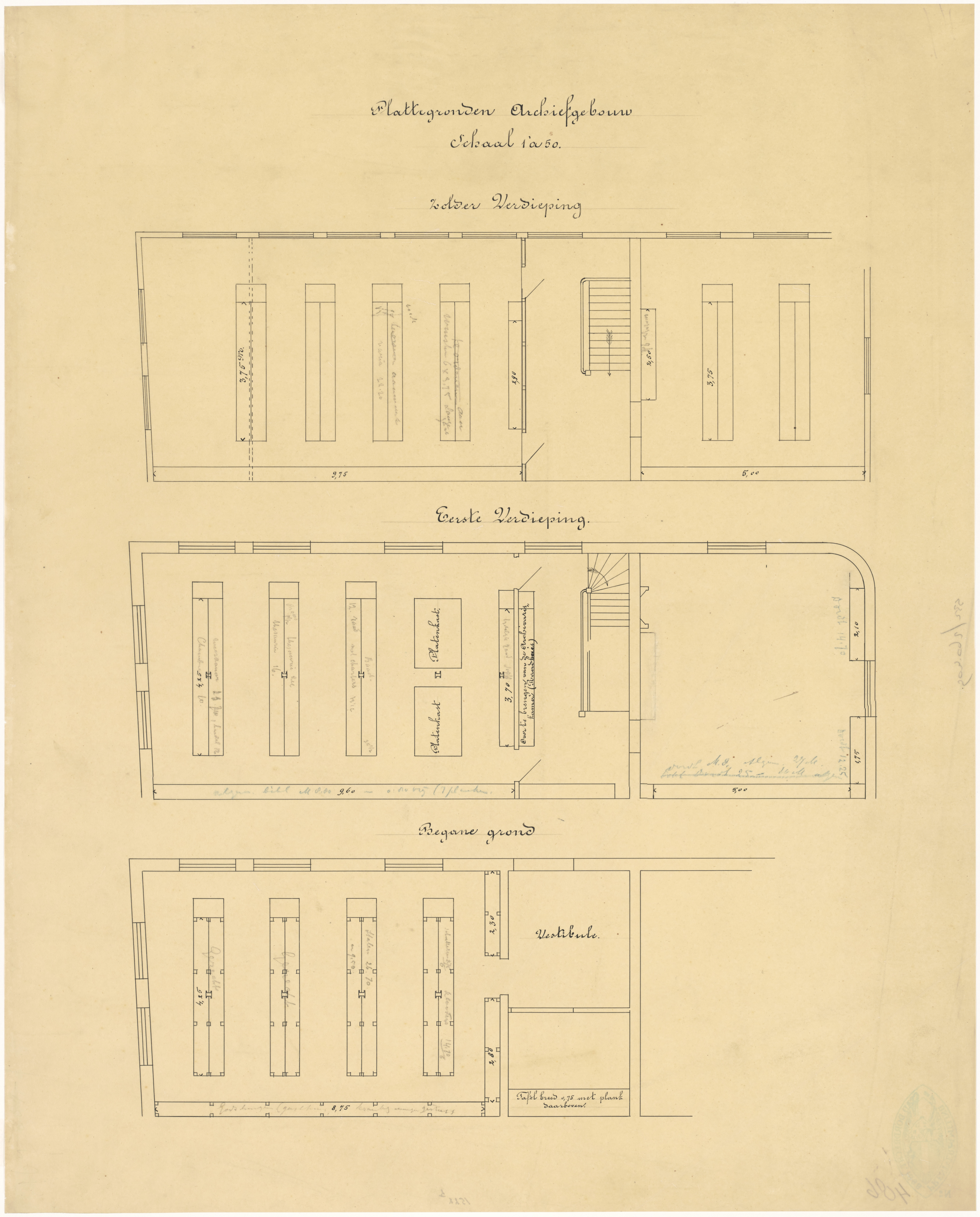 Het ontwerp voor de inrichting van het archiefgebouw van het woonhuis van weduwe D. …