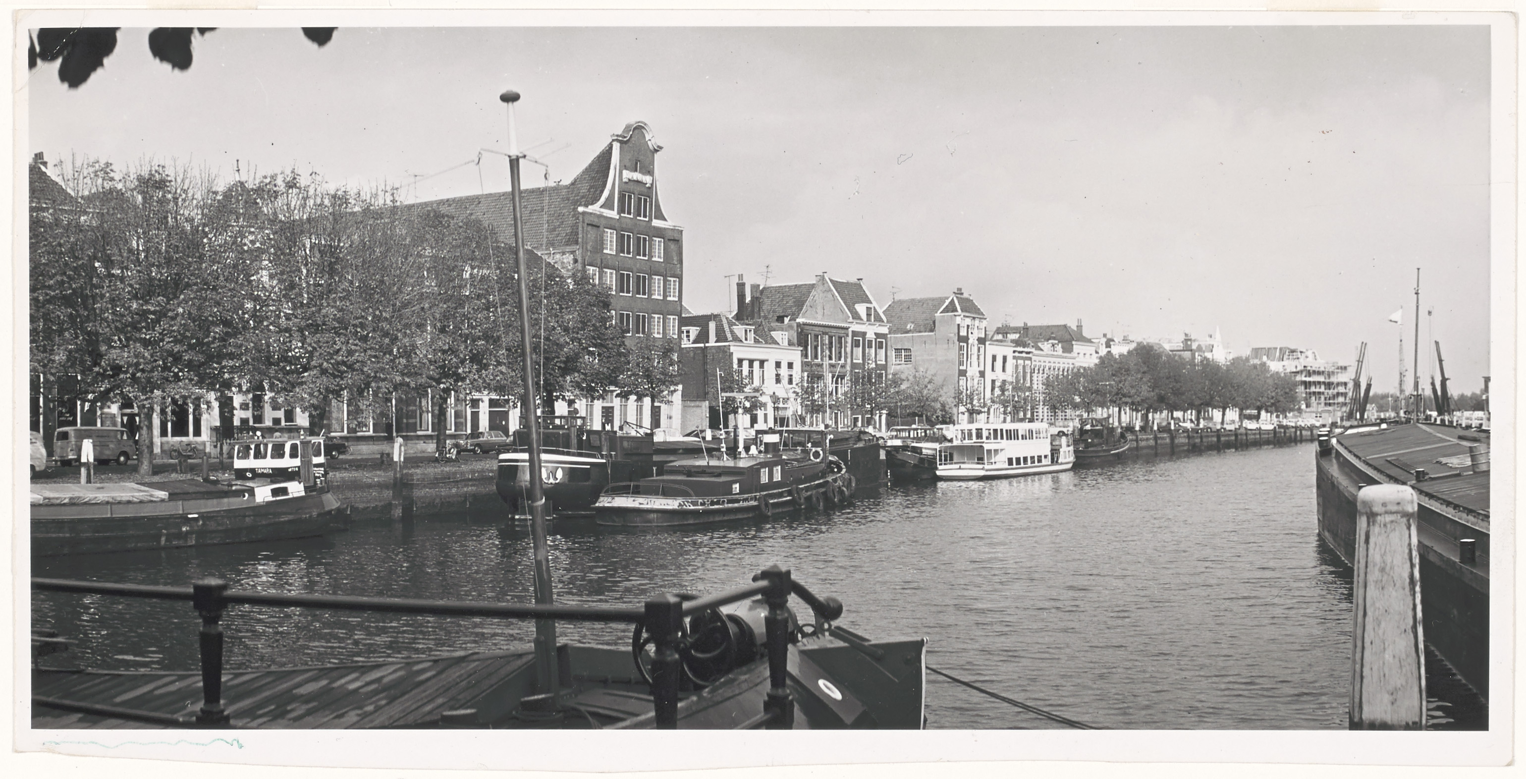 - De Wolwevershaven vanaf het Vlak. Het hoge pand is pakhuis Stokholm.