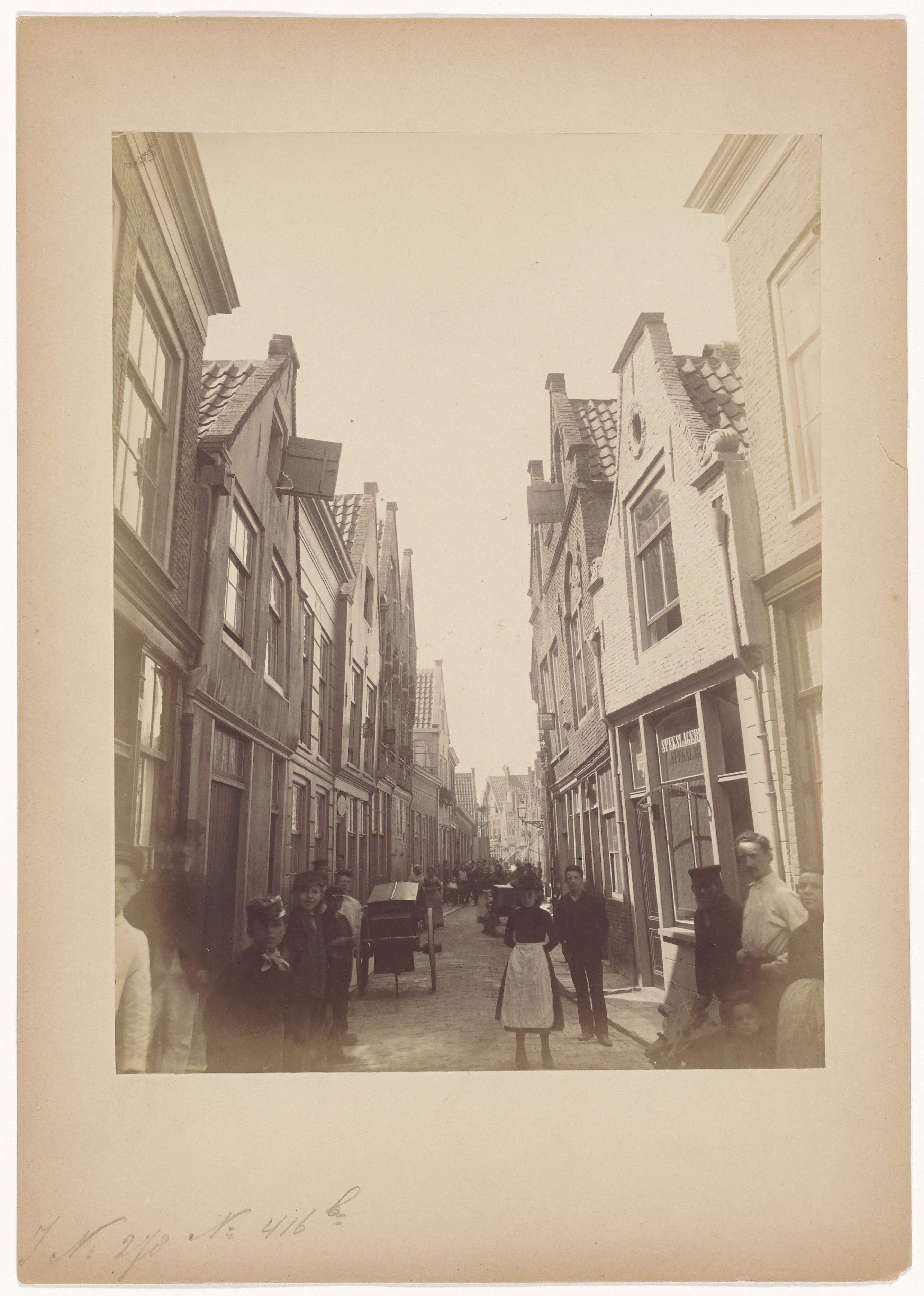 Rechts zit een spekslagerij. Links zie ik het huisnummer 8. In het linker bovenlicht van de spekslagerij zie ik een 3 wat ook een huisnummer kan zijn of een onderdeel daarvan, b.v. 31. Het adresboek van 1885 geeft een rijtje spekslagers aan die ik een beetje ben nagelopen. Bij afbeelding 552_316173 heb je minder moeite met dit plaatje, ondanks dat die minder van kwaliteit is. Maar ook de Raamstraat vind ik bedenkelijk, temeer dat de spekslager uit die periode op nr 8 zat (A. Heymans) en zit daarom ook niet in m'n rijtje met mogelijke spekslagers. Suggesties uit dat rijtje spekslagers: Kolfstraat 39 en Grote Spuistraat 39. Maar ook die zie ik niet zitten. Het zal toch niet de Lastige Eendstraat zijn? :)