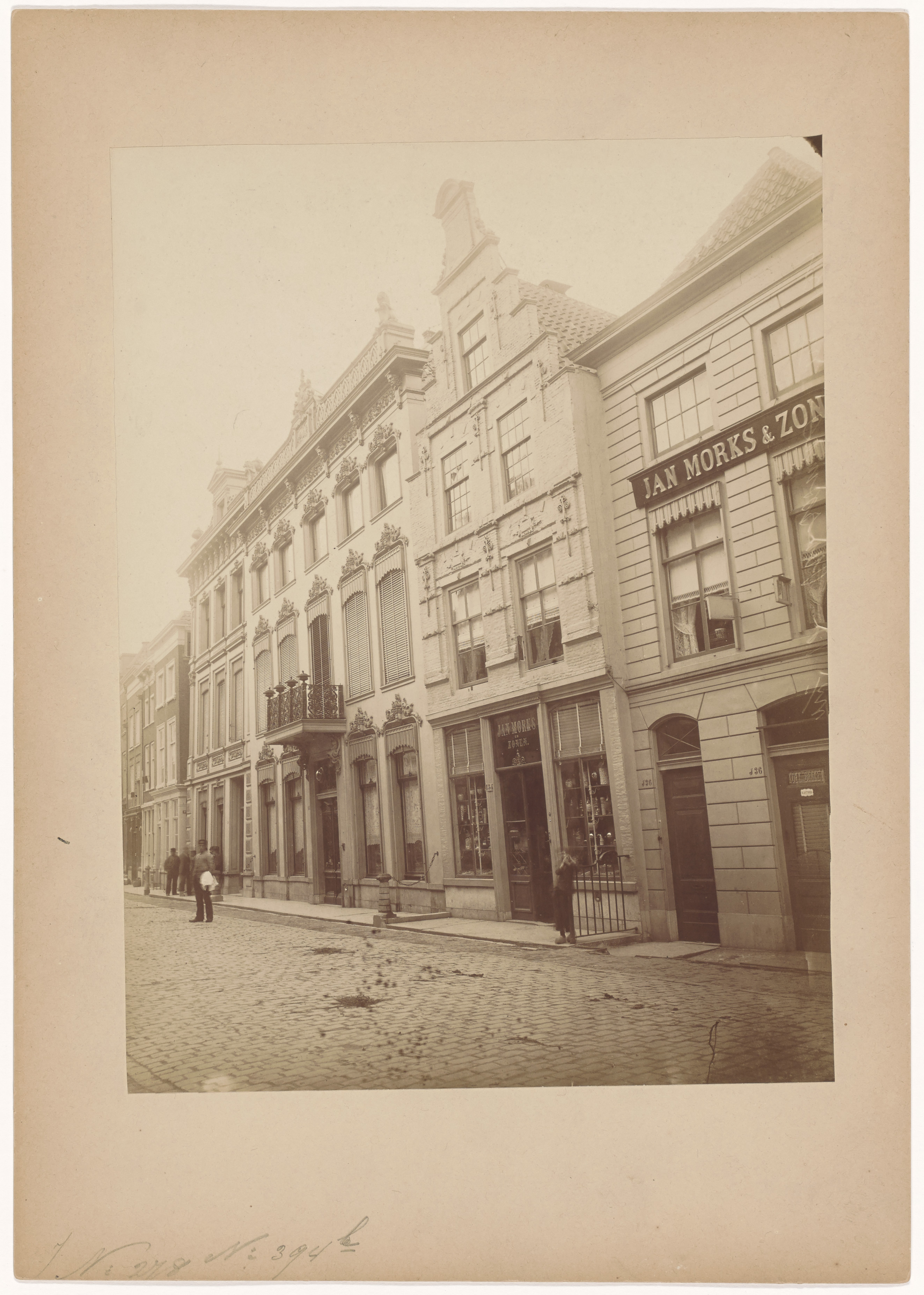 - Panden van firma Jan Morks & Zonen, koek- en banketbakker en winkelier in koloniale waren op de Voorstraat.