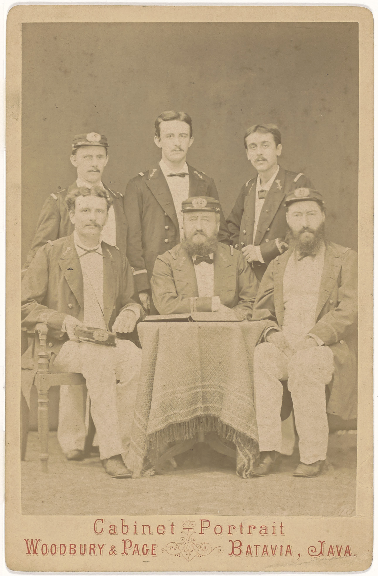 Wonderlijke verzameling tenues trouwens, geen das is hetzelfde en er lijkt aardig wat kleurverschil te zitten in de jasjes. Het zogenaamde 'klein tenue' bestond in Europese en tropenversie in resp. donkerblauw en wat lichter blauw, mogelijk is dat een verklaring. De open draagwijze is zeer informeel. Woodbury & Page was volgens het Rijksmuseum actief tussen 1857 en 1908.