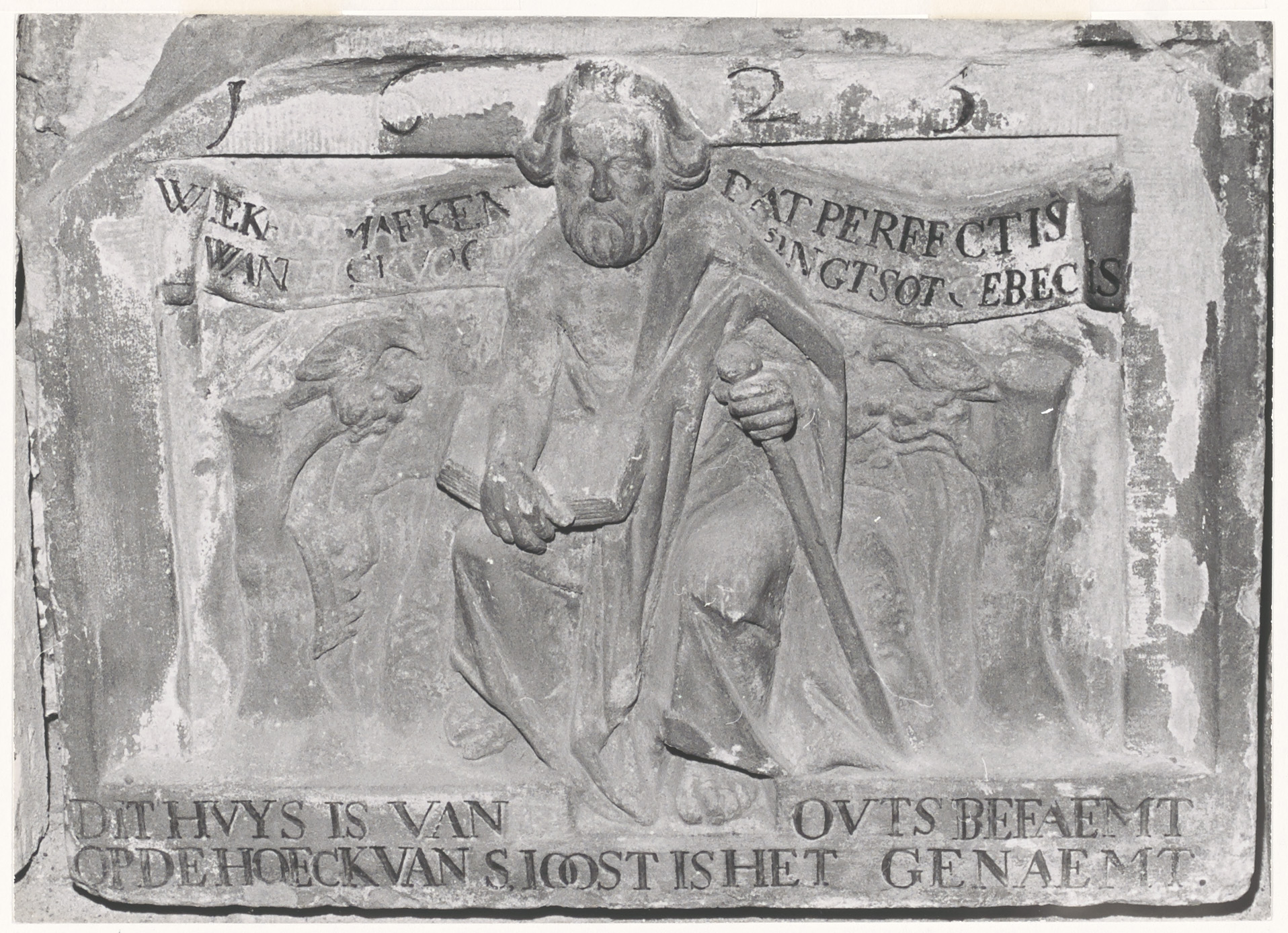- Gevelsteen van het huis Sint Joost op de hoek van de Aardappelmarkt en de Kuipershaven.