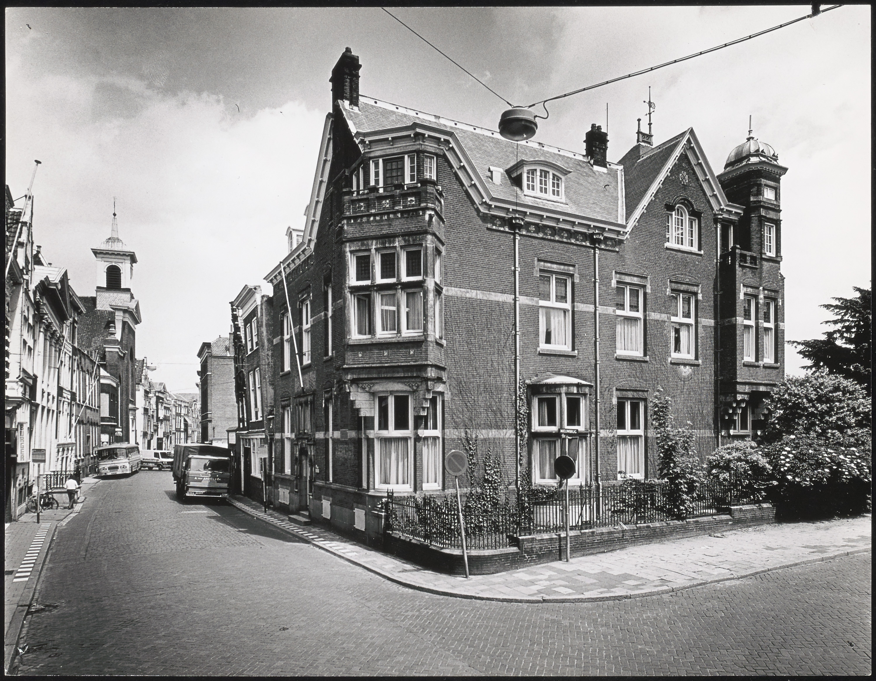 Huis Cronenburch op de hoek van de Wijnstraat en de Nieuwbrug (rechts). Links de …