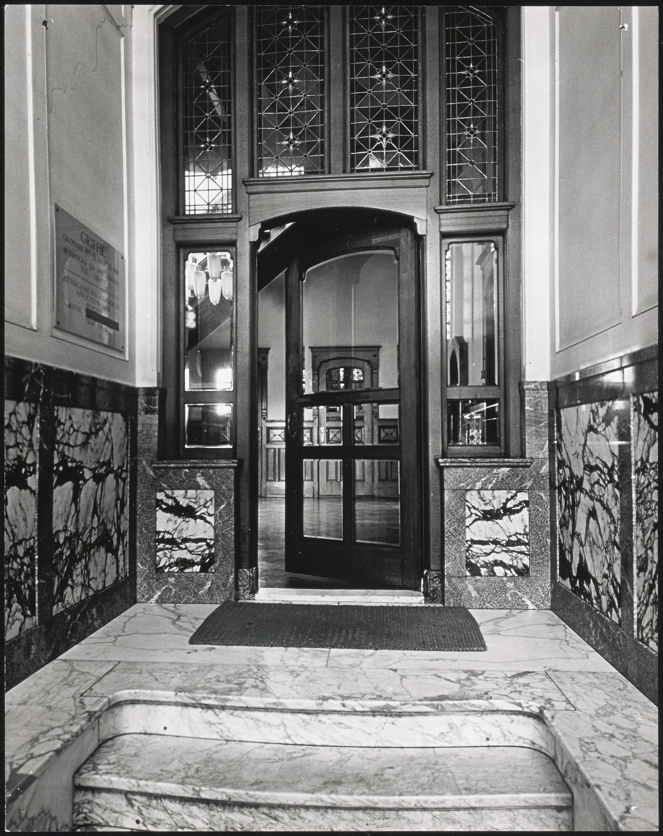 - Entree van huis Cronenburch op de hoek Wijnstraat en de Nieuwbrug.