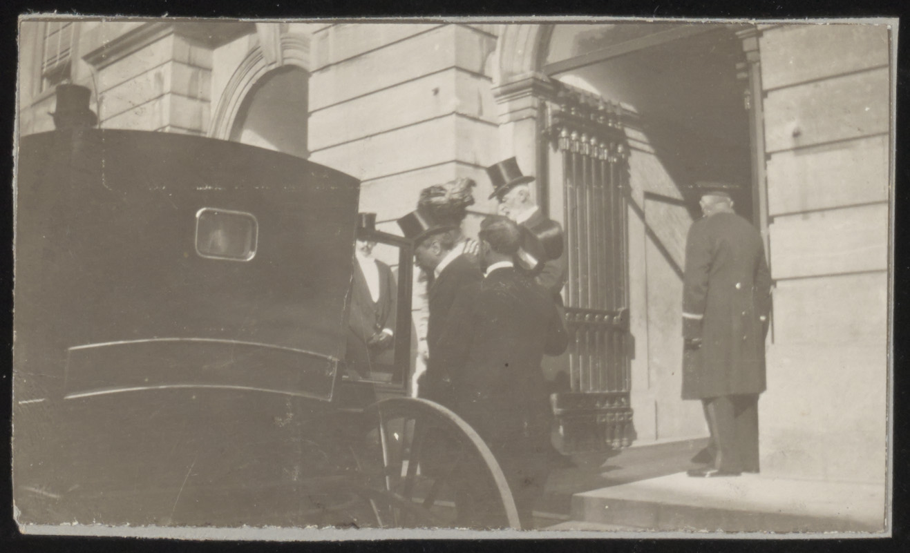 - Huwelijk van Samuel Crena de Iongh AC en Anna Catharina Kapteijn op het stadhuis aan de Stadhuisbrug in Utrecht. Met witte baard is de vader van de bruid, professor dr. Willem Kapteijn.