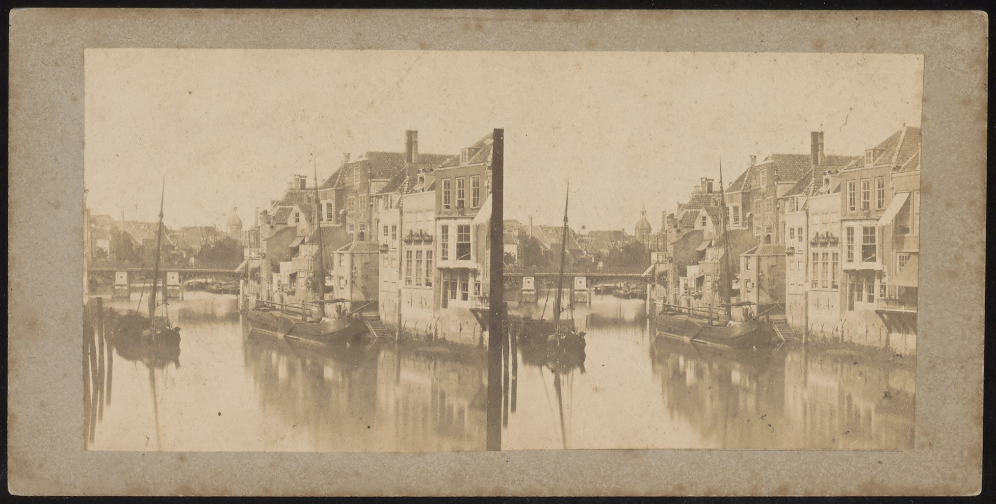 - Stereofoto van de Wijnhaven vanaf de Wijnbrug richting Nieuwbrug. Rechts bij het trapje, de Kleine Appelsteiger.