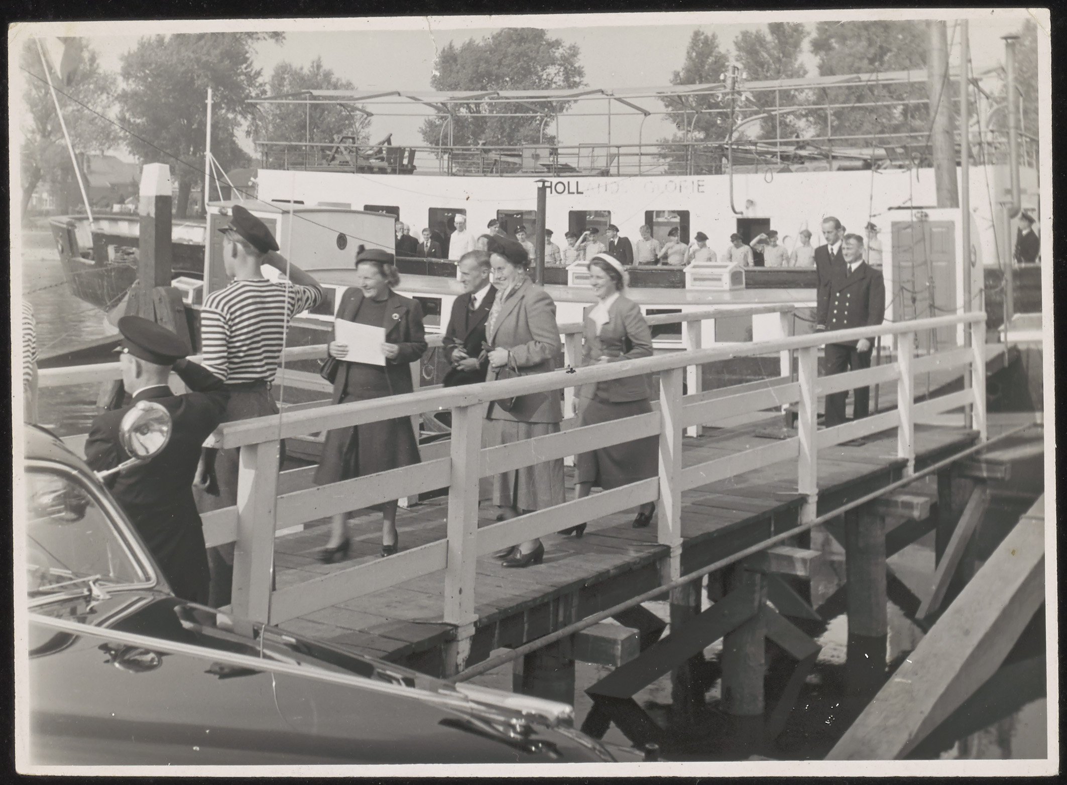 - H.M. Koningin Juliana tijdens haar bezoek aan het opleidingsschip Hollands Glorie in het Wantij, afgemeerd aan de Badweg.