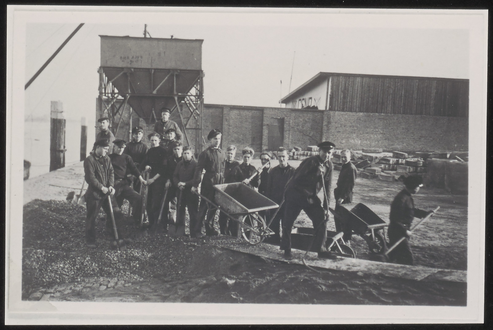 - Jongens van de Centrale Werkplaats aan het kruien op de kop van de Papendrechtsestraat bij de Beneden Merwede.
