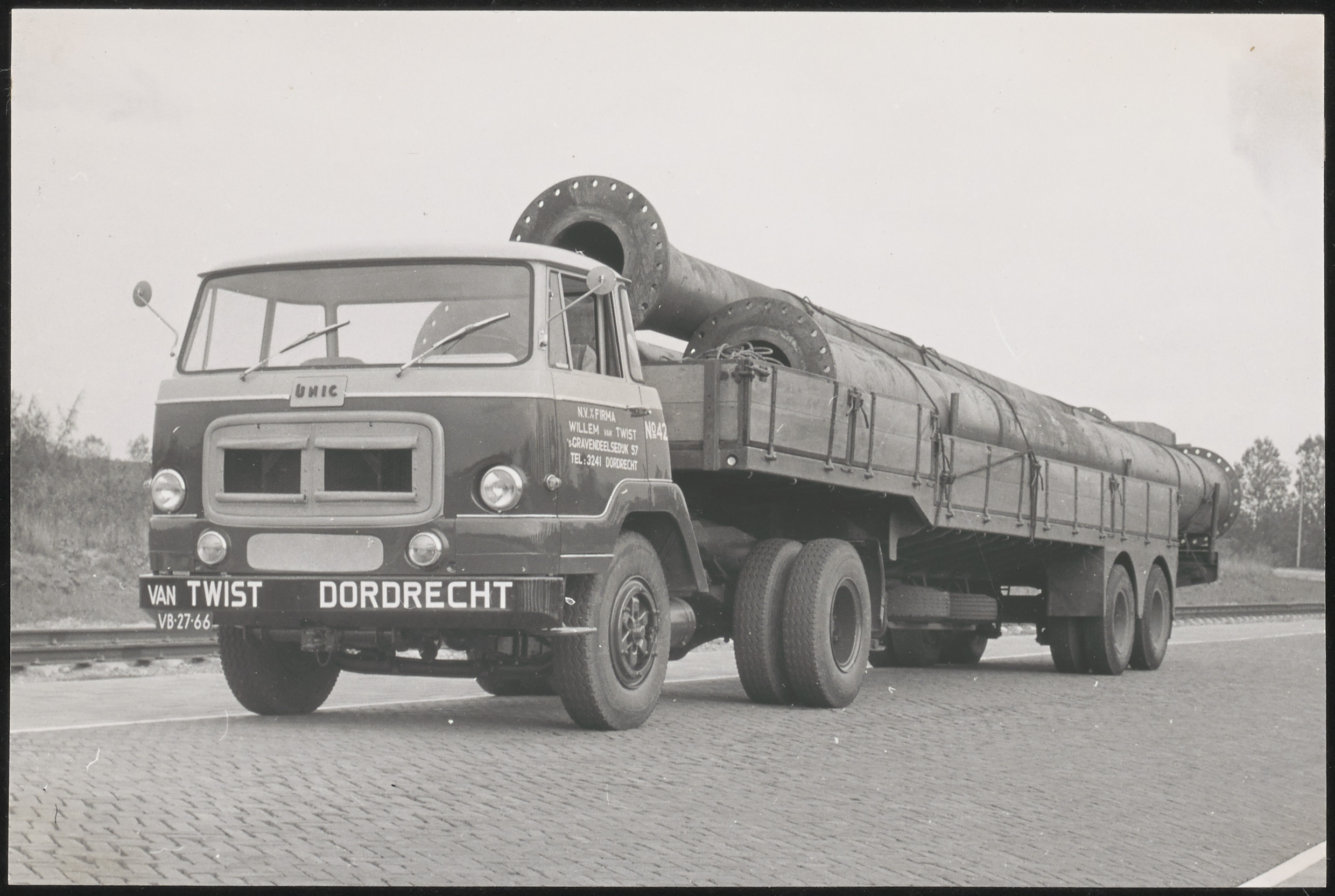 Vrachtwagen van transportbedrijf Willem van Twist op de Wieldrechtseweg.