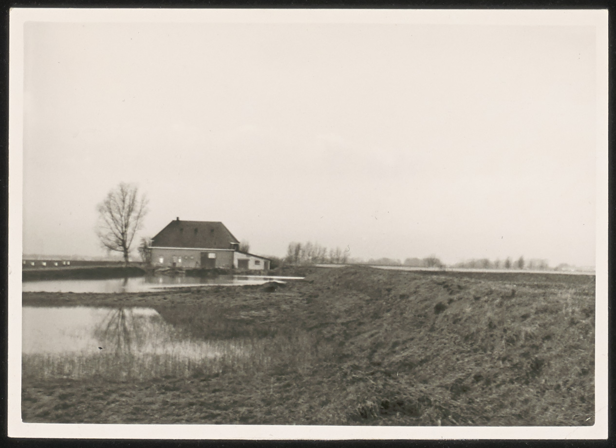 Boerderij De Kleine Rug aan het Wantijbij het Vissertje. Rechts spaarbekken de Grote …