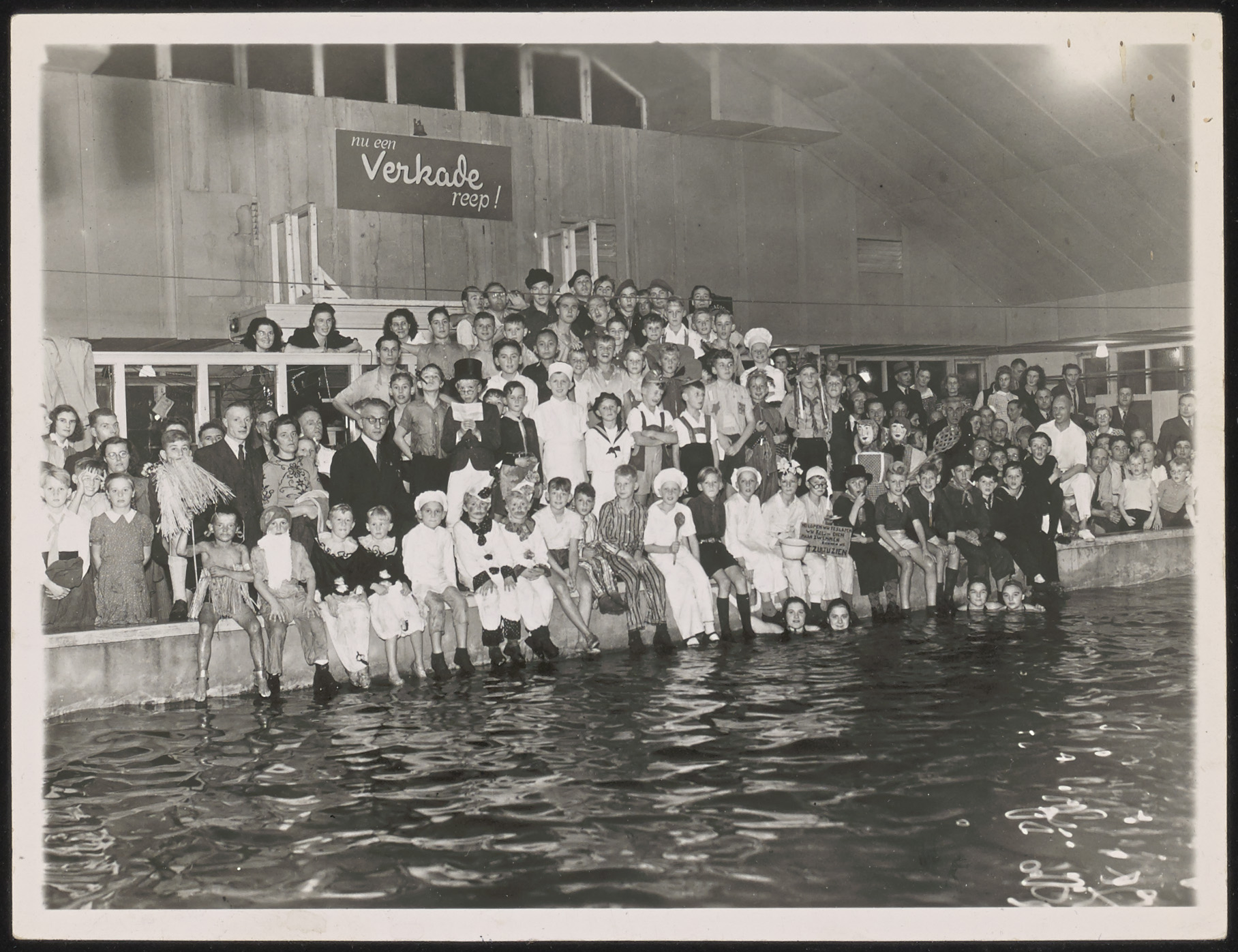 Gekostumeerd zwemmen na het behalen van het zwemdiploma in het Sportfondsenbad.