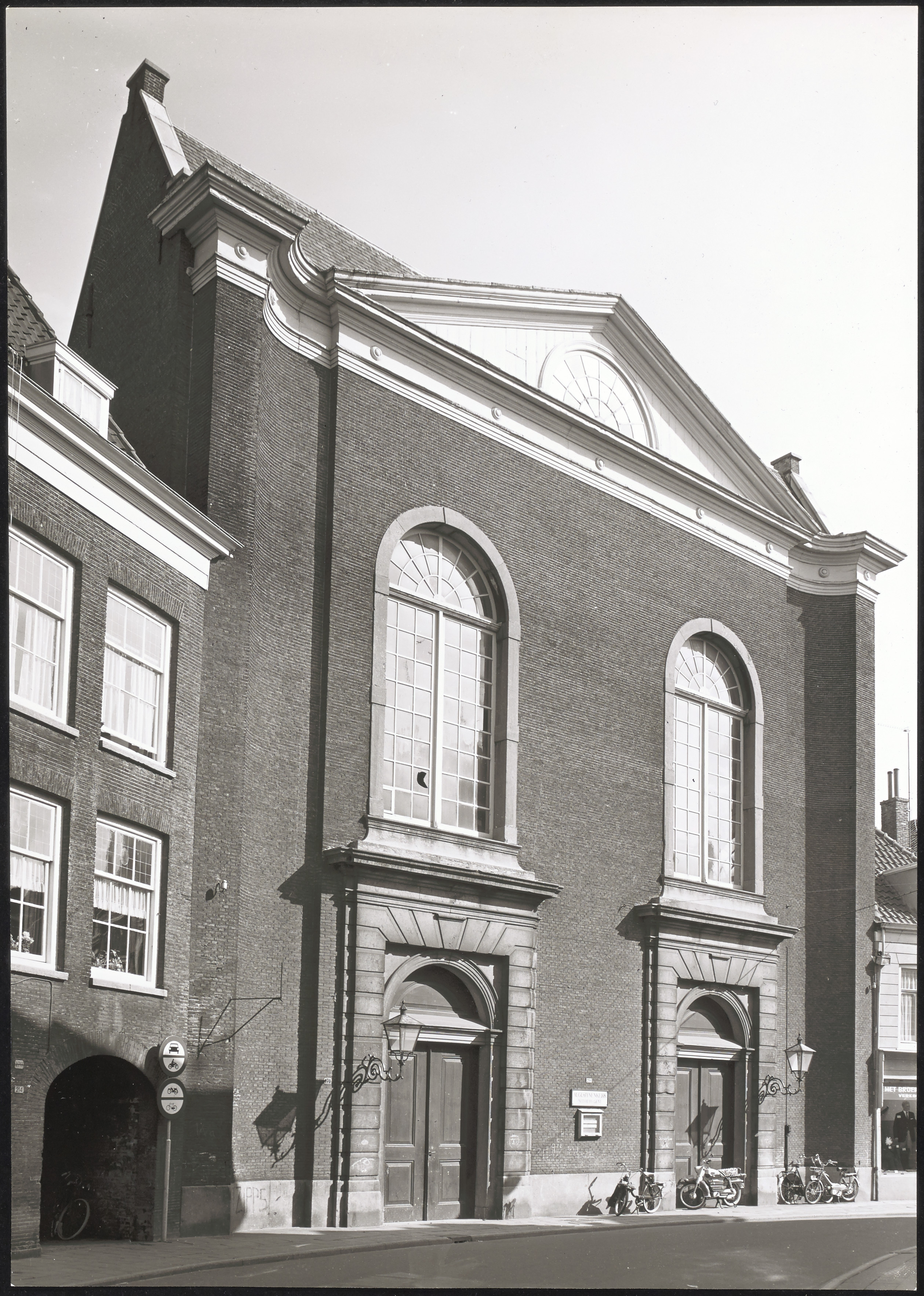 - De Augustijnenkerk aan de Voorstraat. Links de poort naar het Hof.