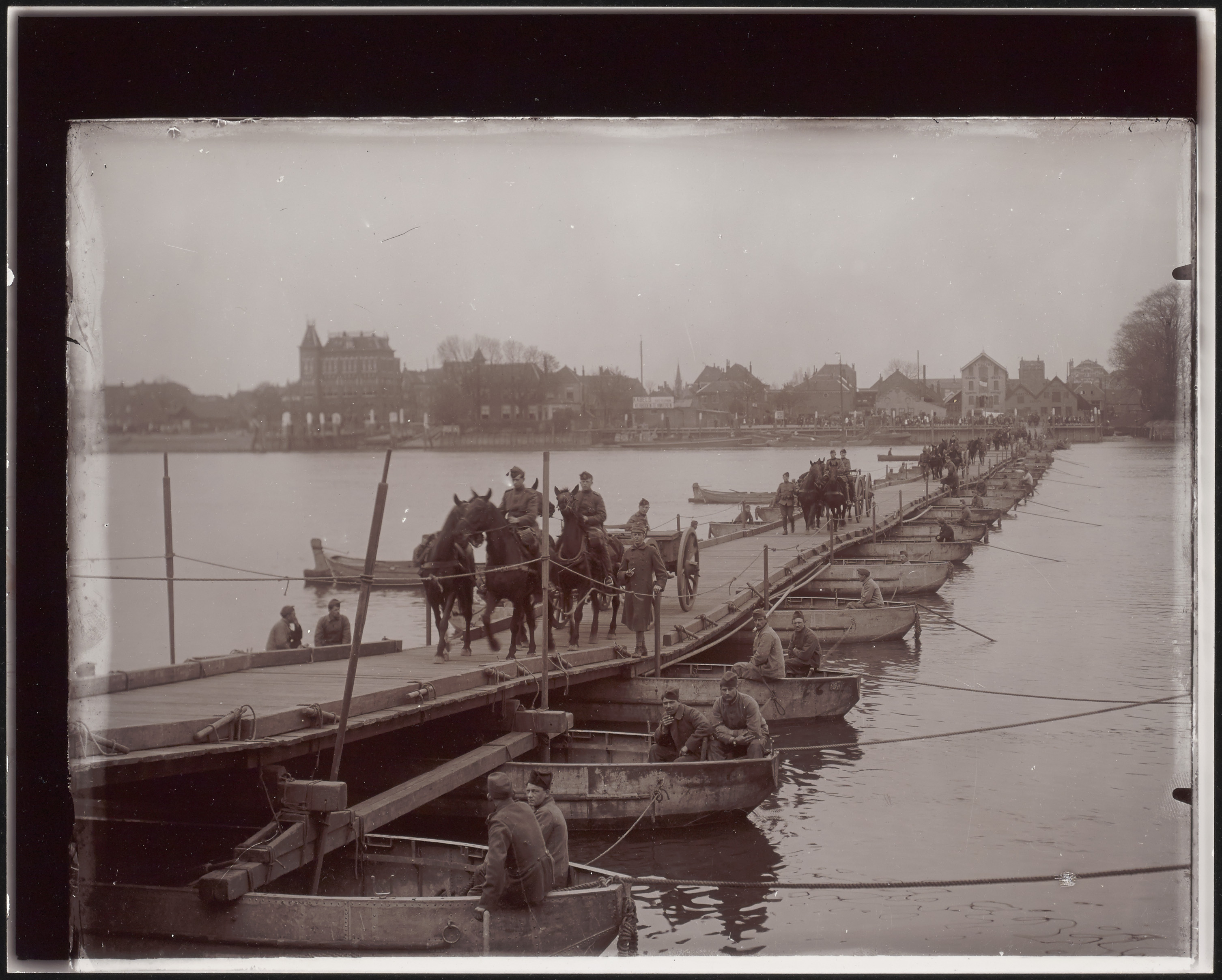 - Pontonniers komen vanuit Zwijndrecht over de pontonbrug over de Oude Maas naar de Buiten Walevest.