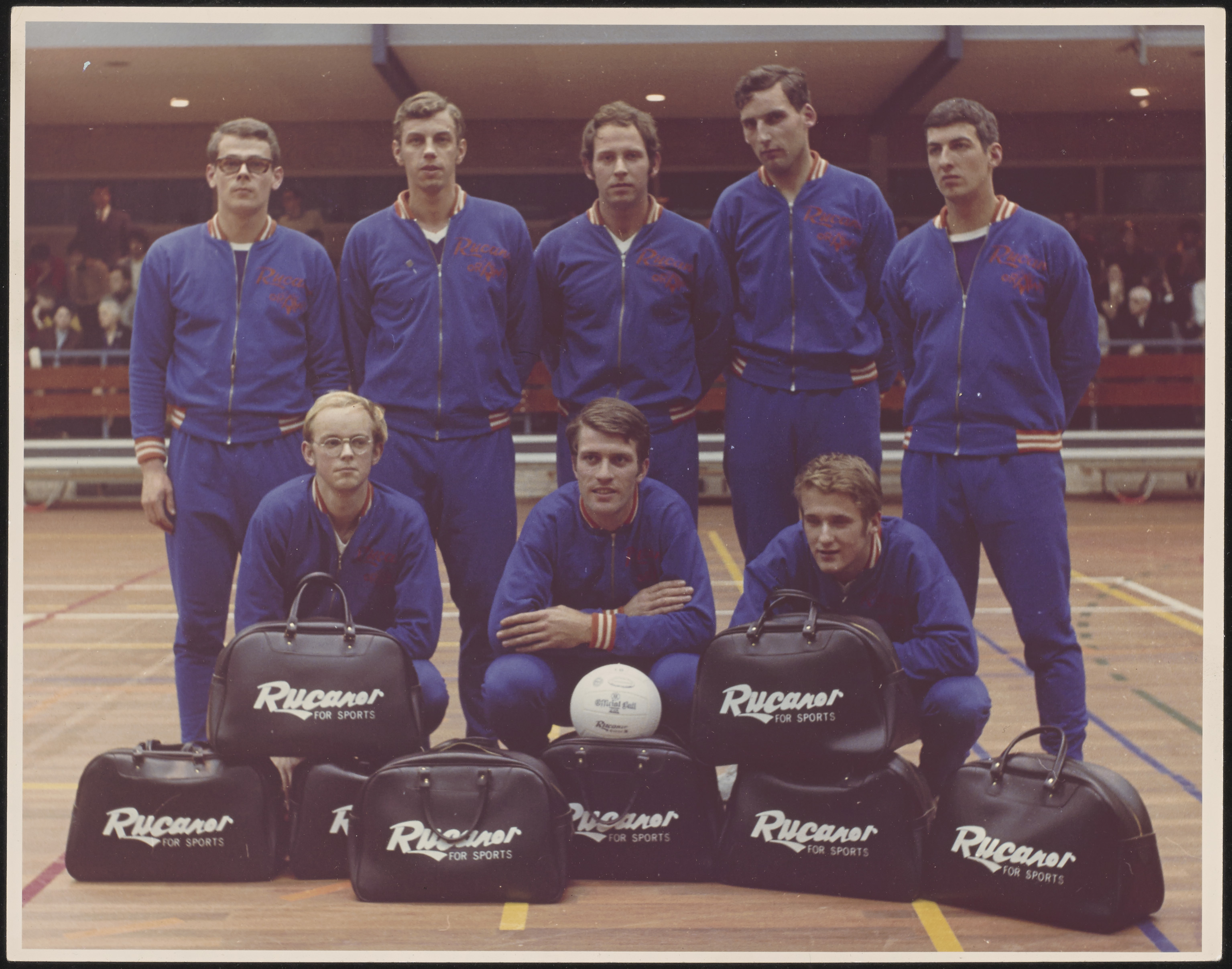 - Het 1e herenteam van volleybalvereniging Orawi in Sporthal Wielwijk. V.l.n.r. staand: Wilco Waardenburg, Paul van Wijnen, Frank Boet, Kees Zanddijk en Jan v.d. Hoek. Gehurkt: Jan Huijzers, Jac Hoogerwerf en Piet de Lange.