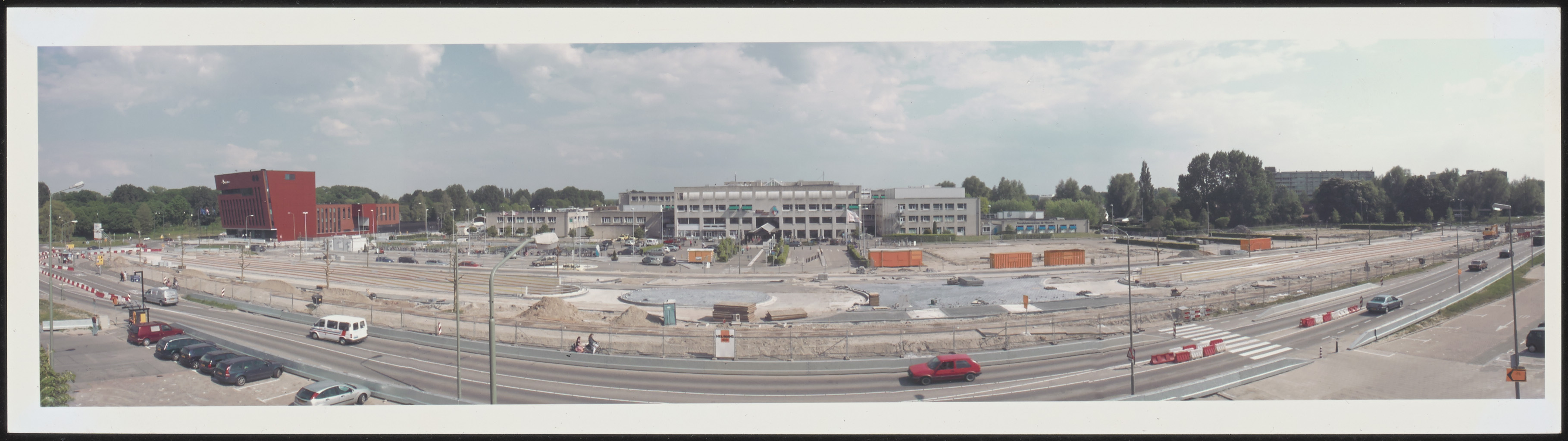 Bouw van het Albert Schweitzerziekenhuis aan de Karel Lotsyweg. Links het hoofdbureau …