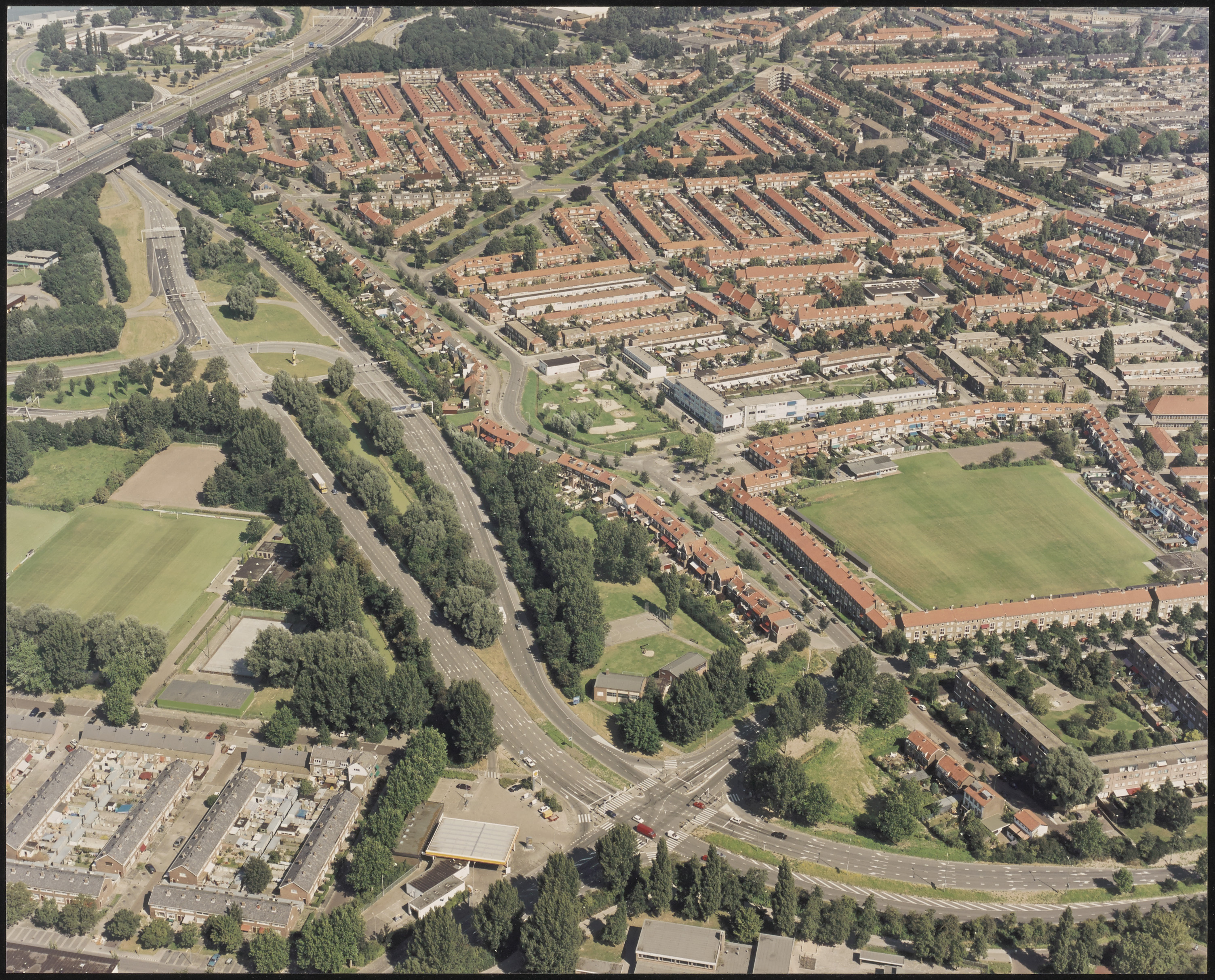 - Luchtfoto van Oud-Krispijn vanaf de Laan der Verenigde Naties naar het noorden. bij Zuidendijk. Linksboven Rijksweg A16.