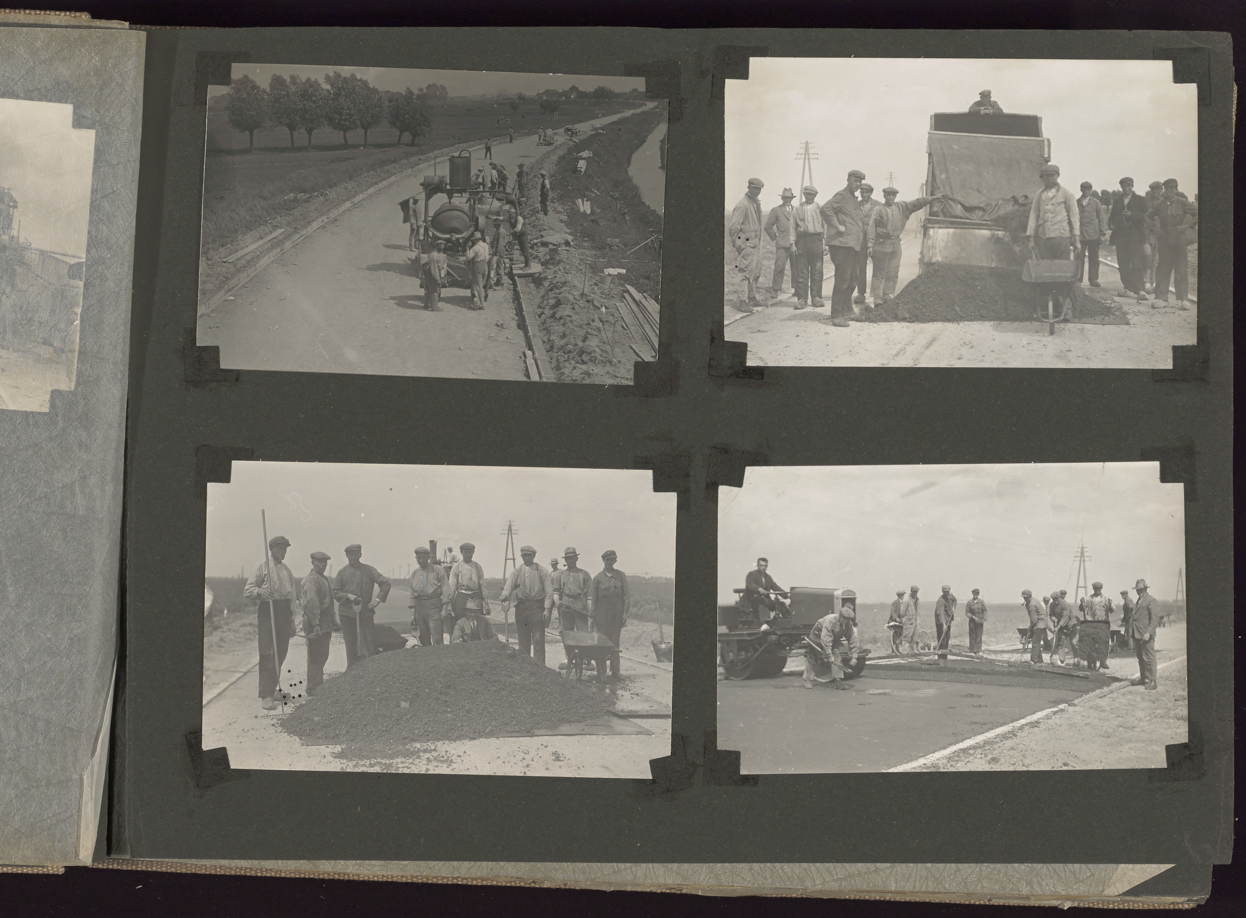 - Aanleg van wegen in de Hoeksche Waard. Linksboven de Maasdamseweg, gezien vanaf bij de Molendijk in de richting van de haven in ‘s-Gravendeel.
