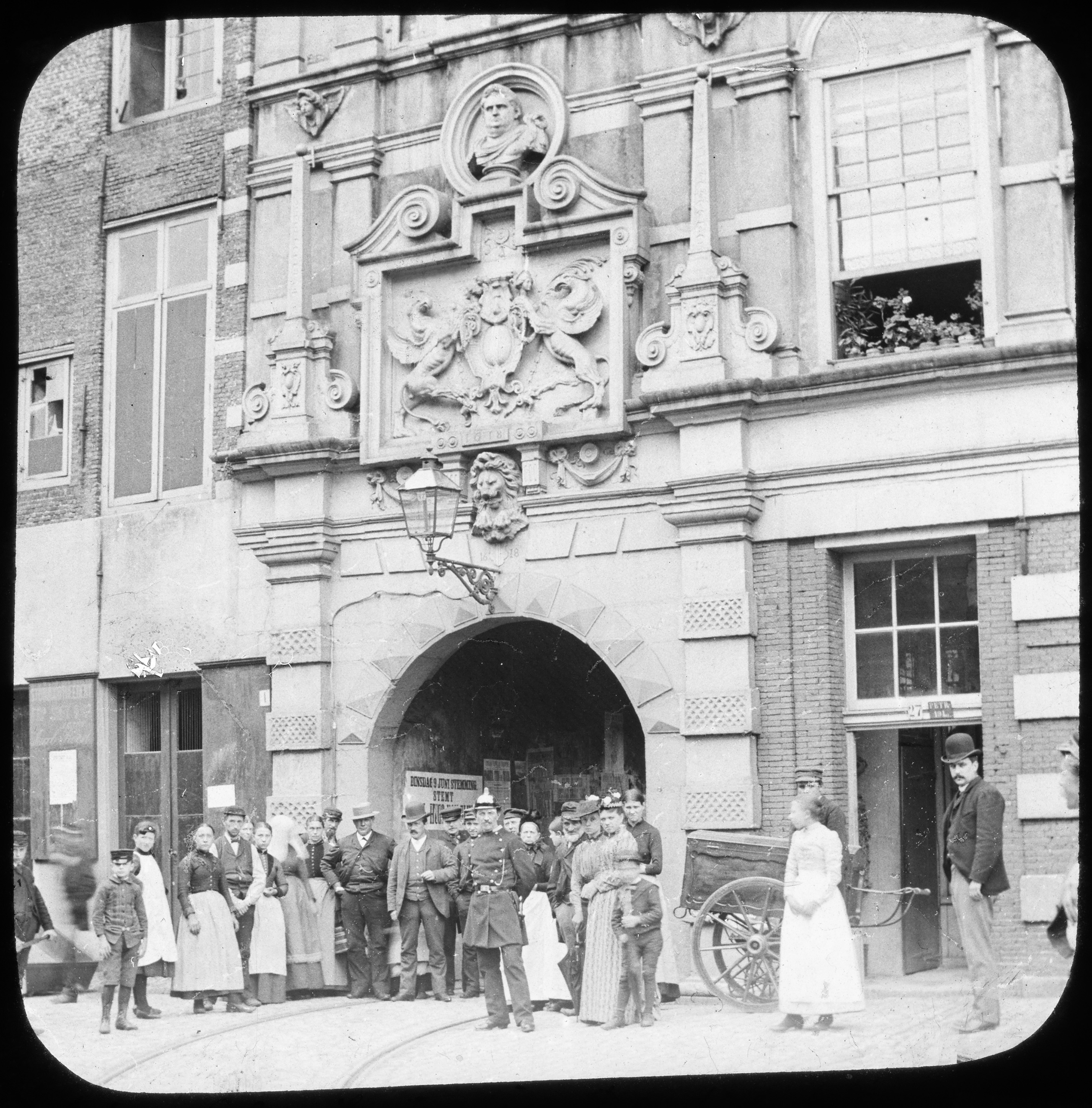 - gevel- en muurversieringen / ornamenten groepsportretten handkarren stadspoorten