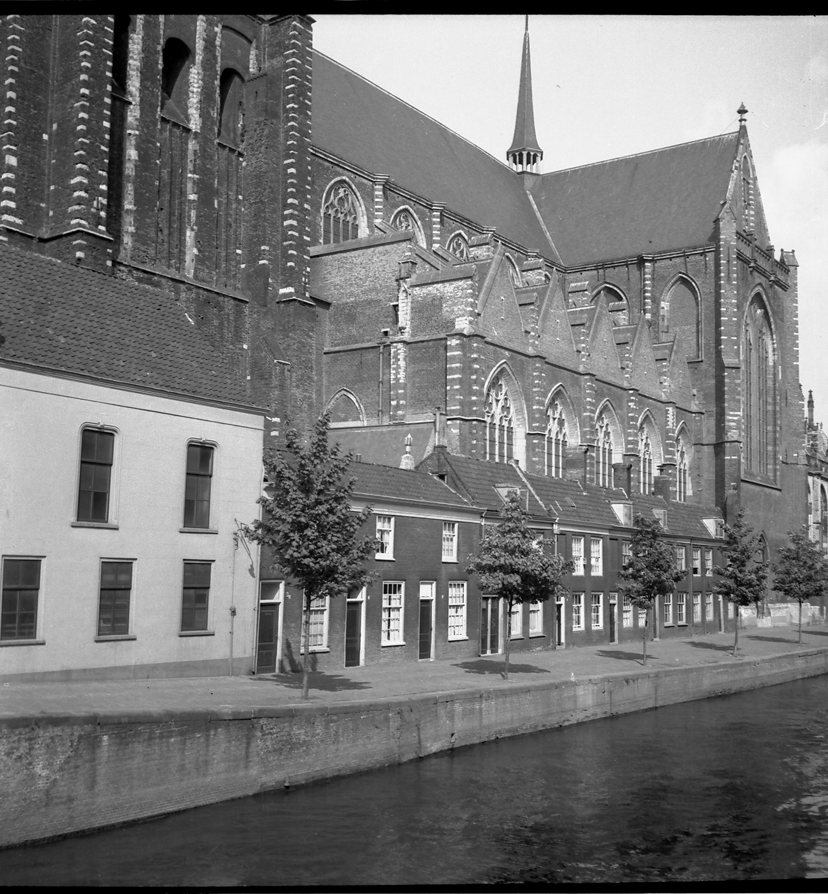 - De Grote Kerk aan de zijde van de Pottenkade, gezien vanaf de Leuvebrug.