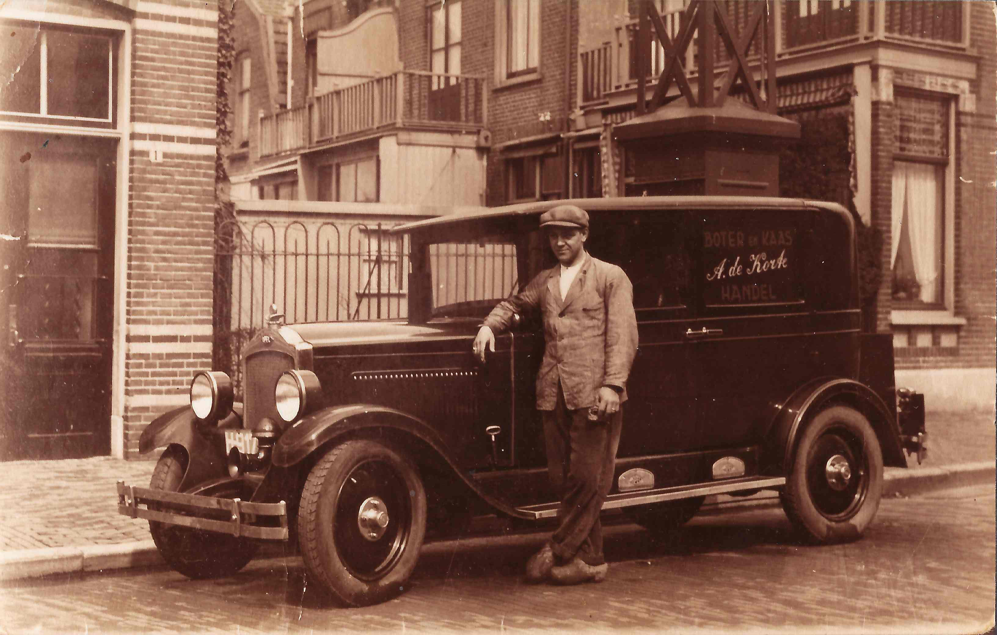 - Auto van zuivelhandel De Korte in de Vondelstraat bij de hoek van de Krispijnseweg.