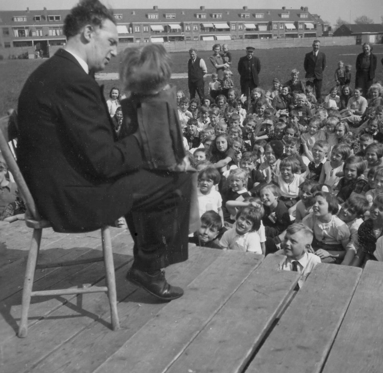 Op de achtergrond achterkant de huizen aan de Jacob Catsstraat.