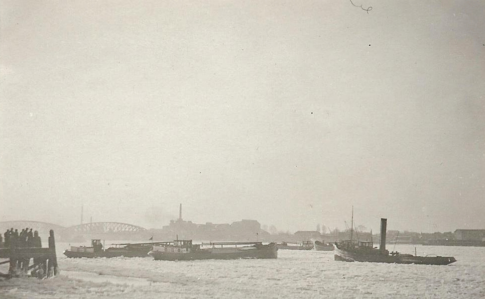 - (stoom)ijsbrekers ijsgang spoorbruggen vrachtboten