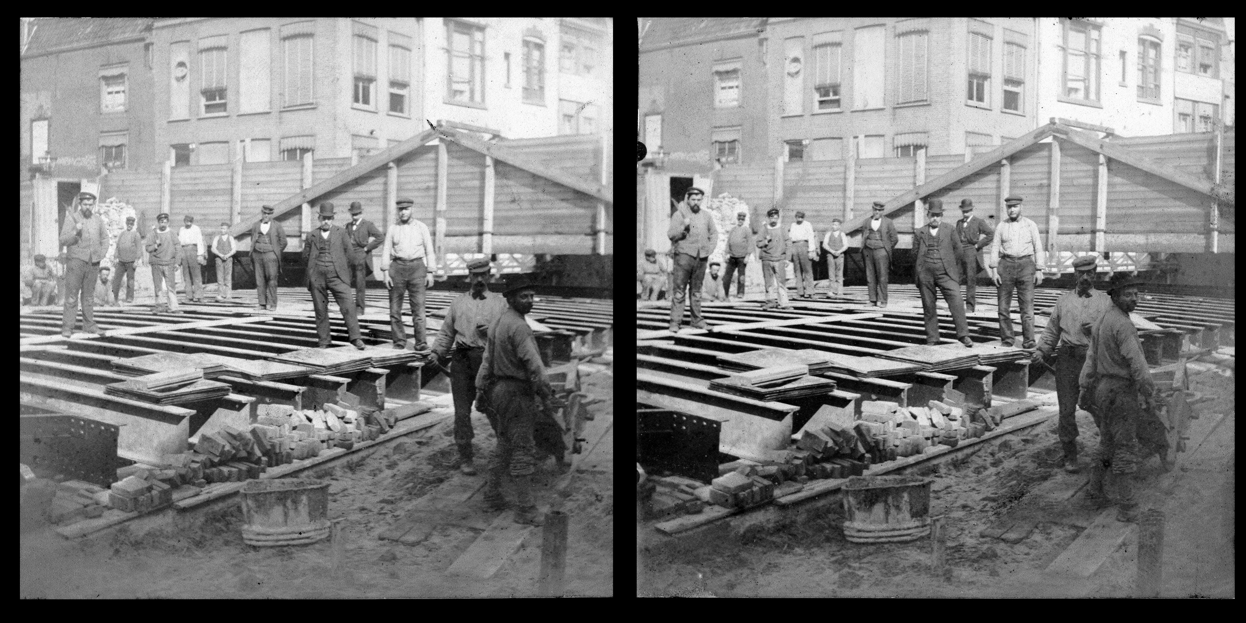 - Stereofoto van de verbreding van de Visbrug over de Voorstraatshaven.