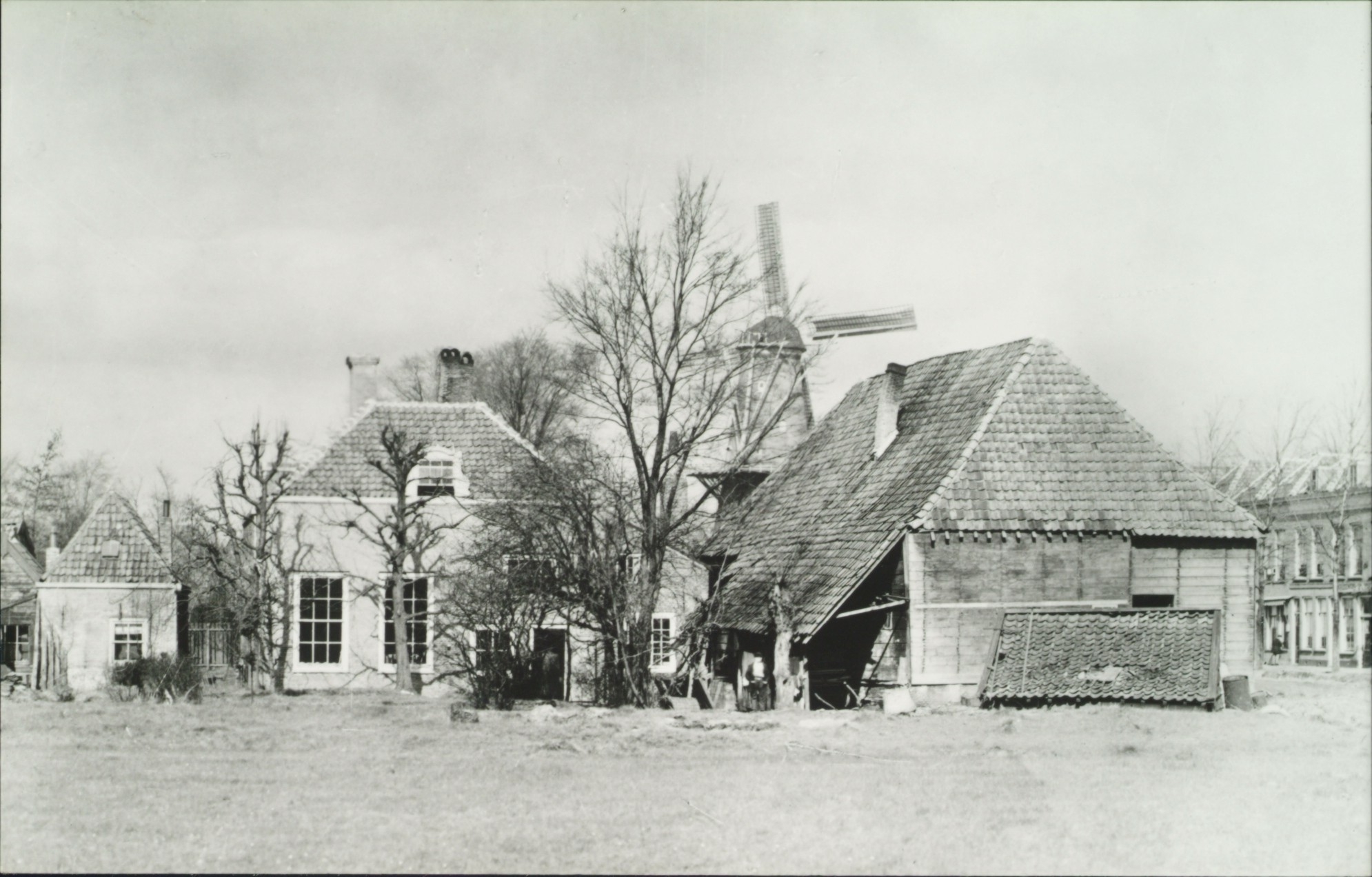 De Blekersdijk, op de plaats waar de Wilhelminakerk is gebouwd. Op de achtergrond molen …