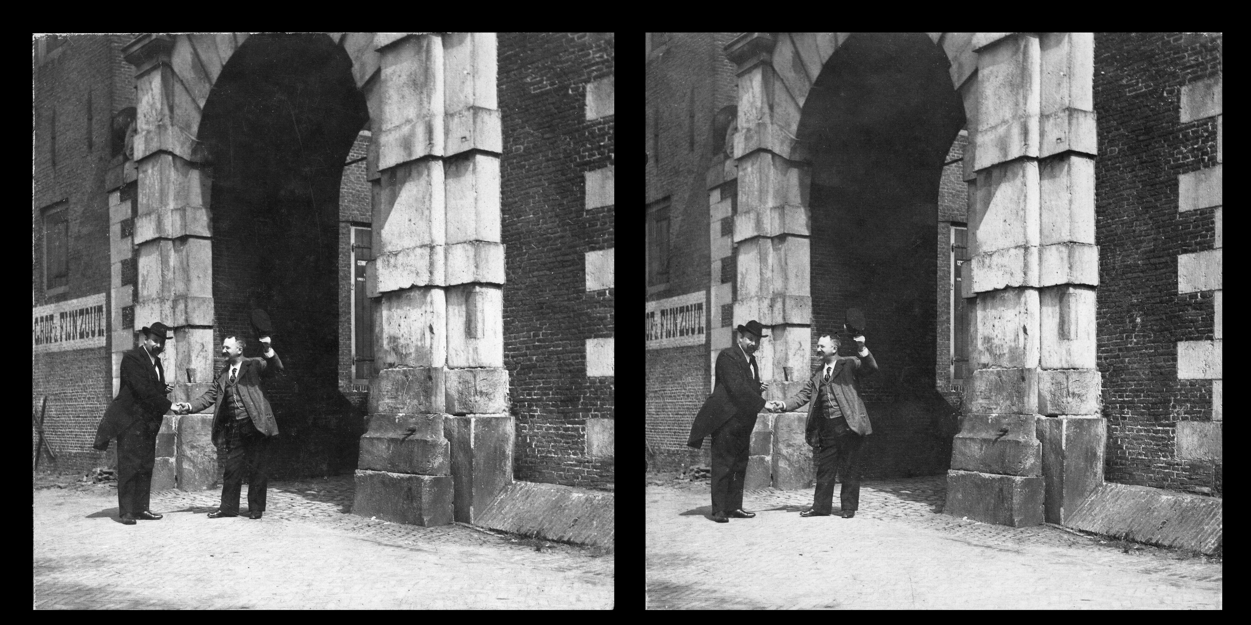 - Stereofoto van de Catharijnepoort aan de zijde van de Hooikade.