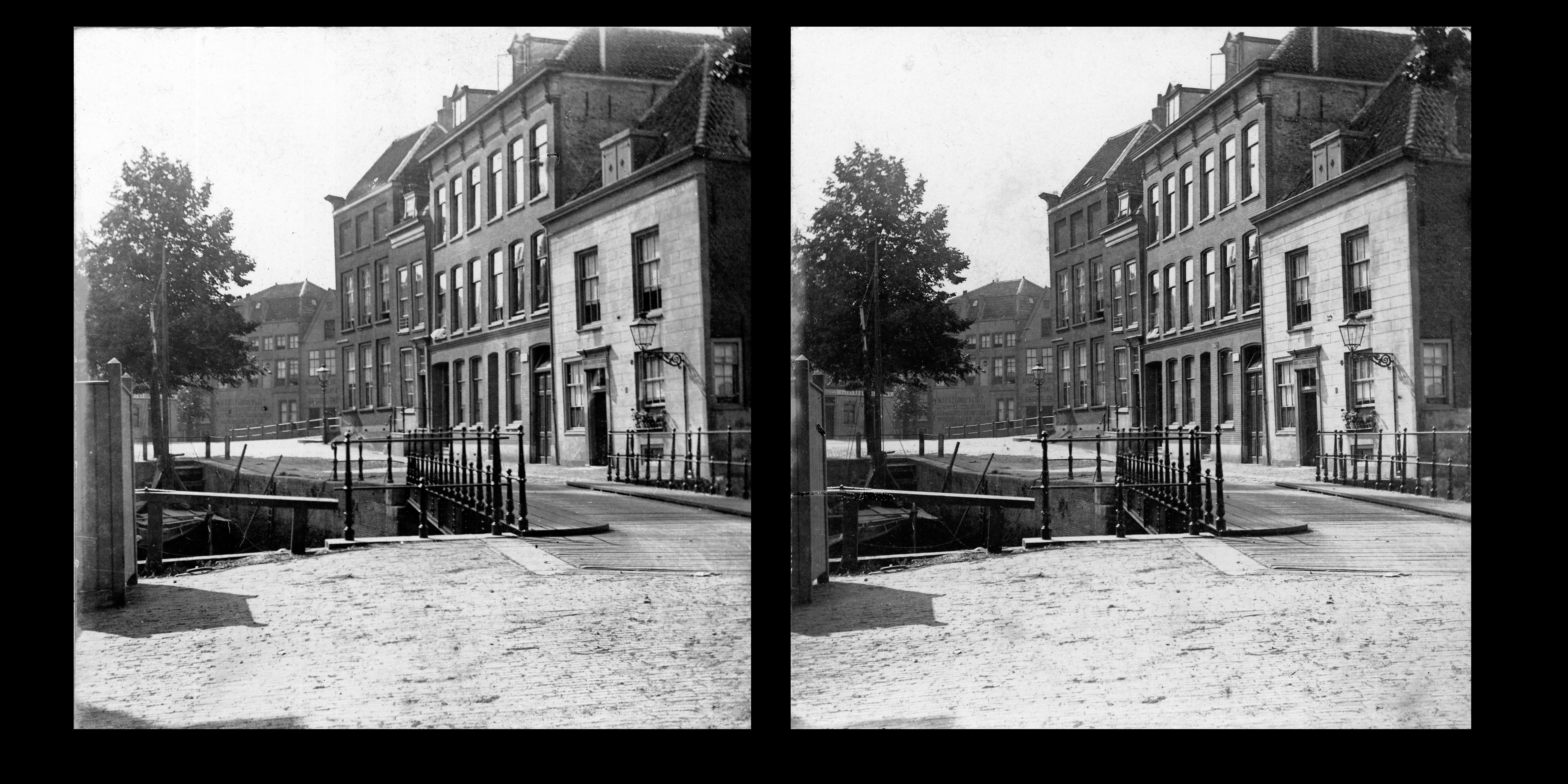 - Stereofoto van de Mazelaarsstraat en Mazelaarsbrug richting Korte Geldersekade.