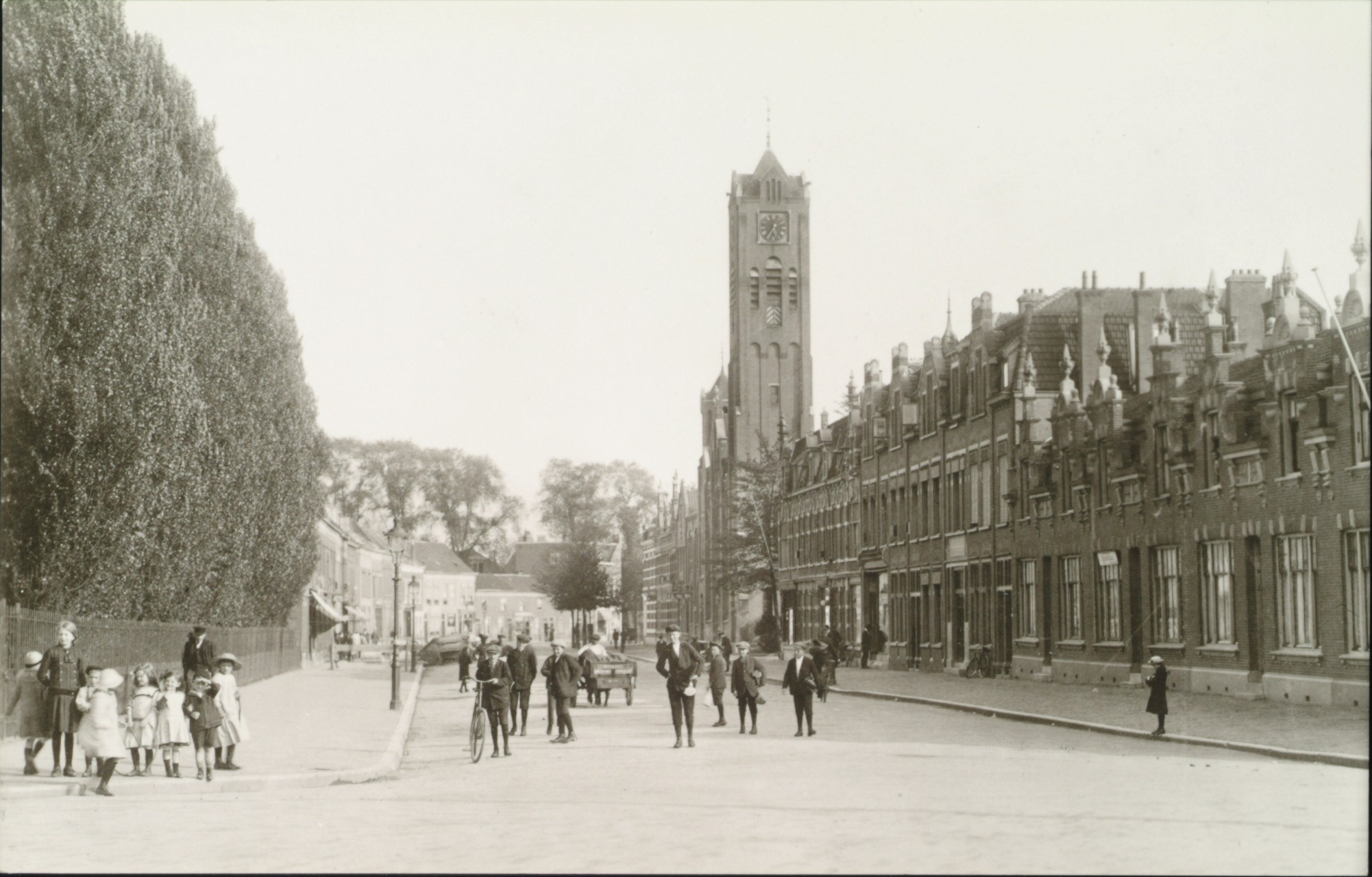 - De Blekersdijk vanaf de Cornelis de Wittstraat richting Wilhelminakerk op de hoek van de Koningin Wilhelminastraat.